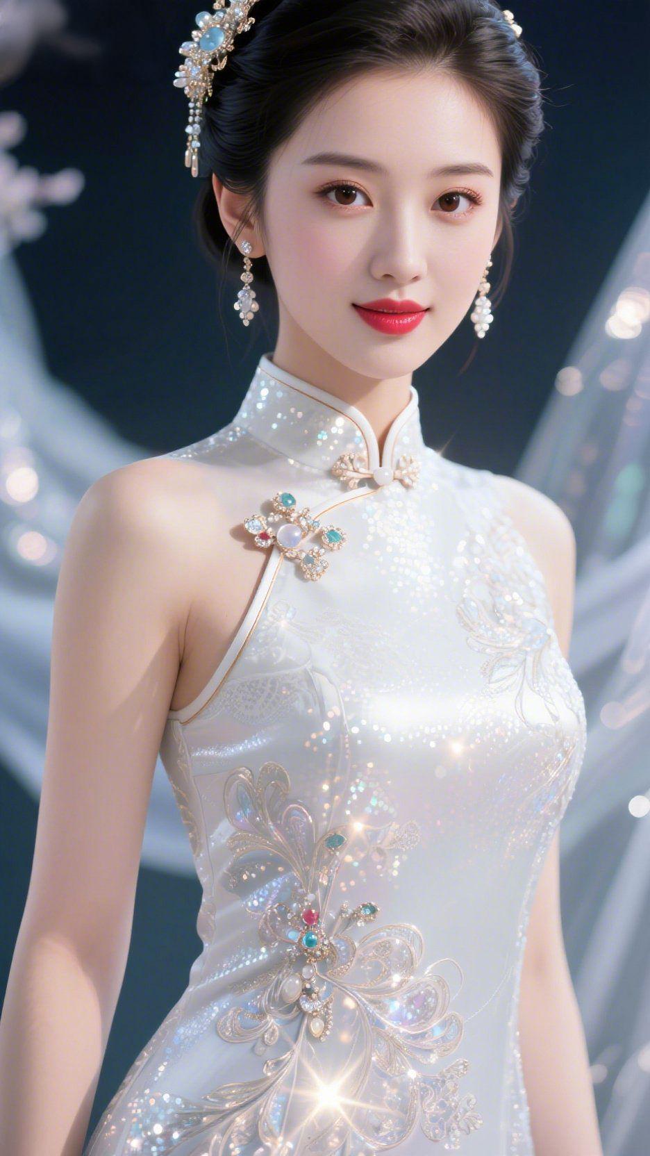 雅韵映清欢 一袭素白旗袍,缀着细腻的莹润光泽,将东方美学的温婉与雅致娓娓道来