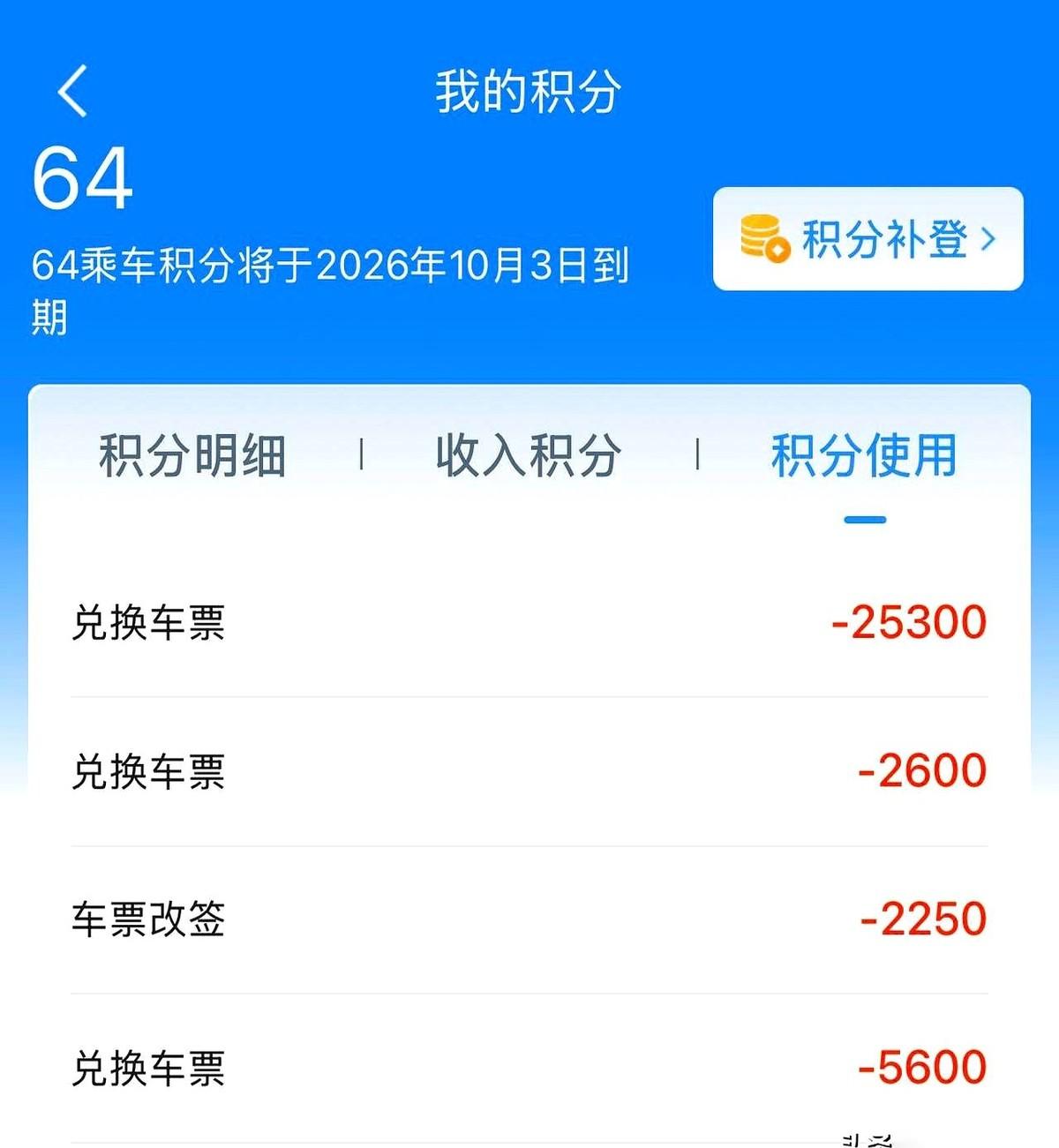 一张572块的火车票,硬是让我147块就拿下了。 不是打折,也不是bug。 是快过期的几万积分,眼看就要作废,兑一张全程票又不够,你说气不气人? 想积分加钱补个差价?系统冷冰冰地告诉你:不行,一张票只能一种支付方式。 但规矩是死的,人是活的嘛。 我一琢磨,直接把这趟车,手动拆成了三段买。 第一段,用我妈的积分。 (悄悄说,让她提前60天把你加进“积分受让人”名单里就行,亲测有效,这羊毛必须薅) 第二段,用我自己的积分,刚好清仓。 最后实在没分了,就剩一小段路,才掏了147块钱。 对,这么一分,总票价是比原来贵了十几块。 但那又怎样? 我把快过期的、本来要打水漂的四百多块钱(积分),全给盘活了。 不然,就只能看着它过期,收到一条“您的积分已清零”的短信,然后捶胸顿足。 所以啊,很多时候不是“不行”,是你没找到那个“门道”。 别总想着跟规则硬碰硬,有时候你得学会跟它“做游戏”,把它拆开、揉碎了,总能找到你的最优解。 这感觉,比省下几百块钱本身,还爽。