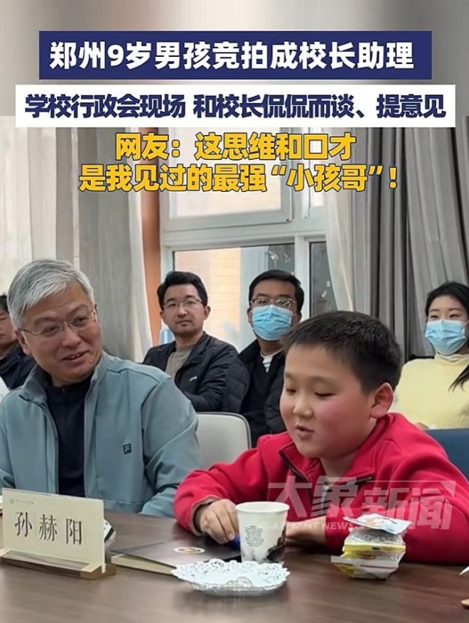 近日,河南郑州四年级小学生孙赫阳,参加校内竞拍,最终用5块1的校园币竞拍成了校长助理,获得了参加学校行政会的资格。