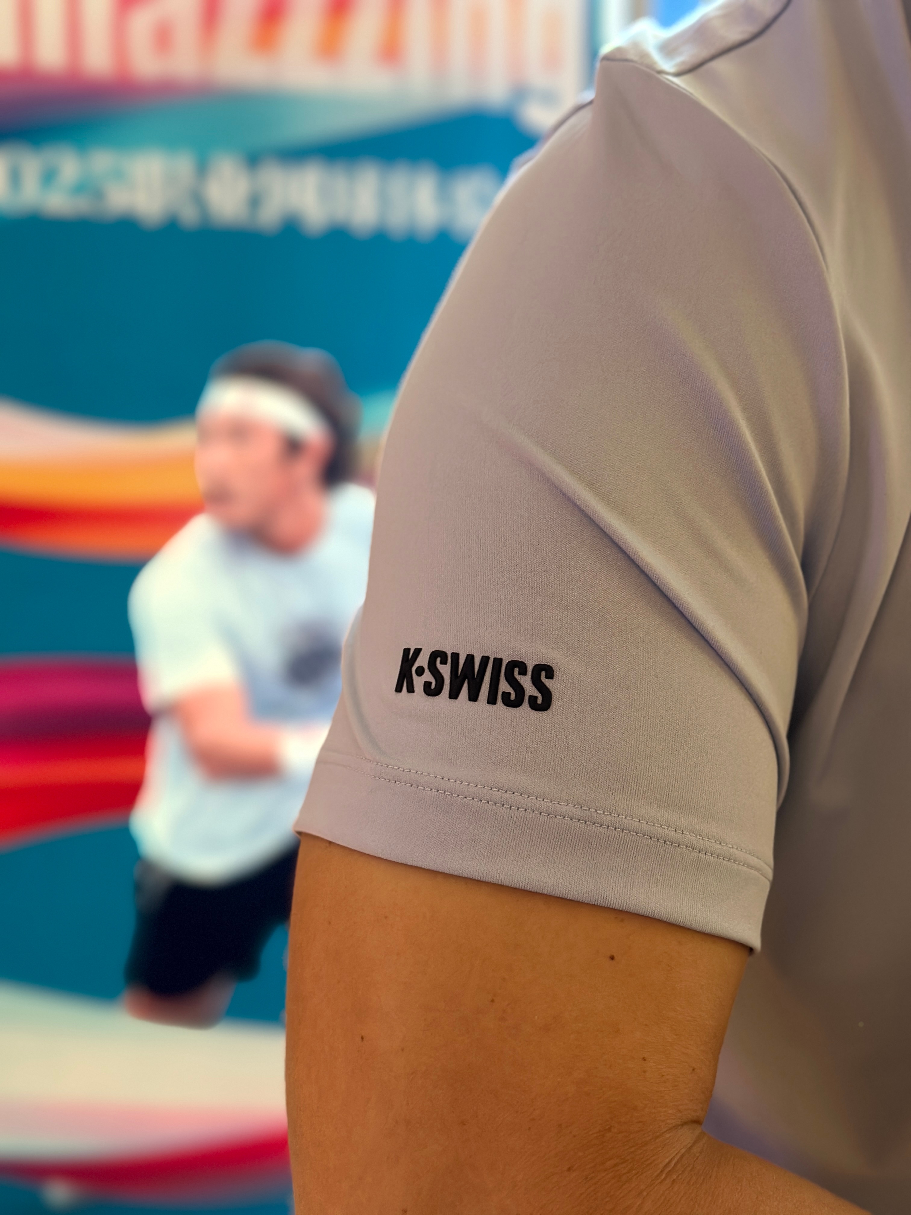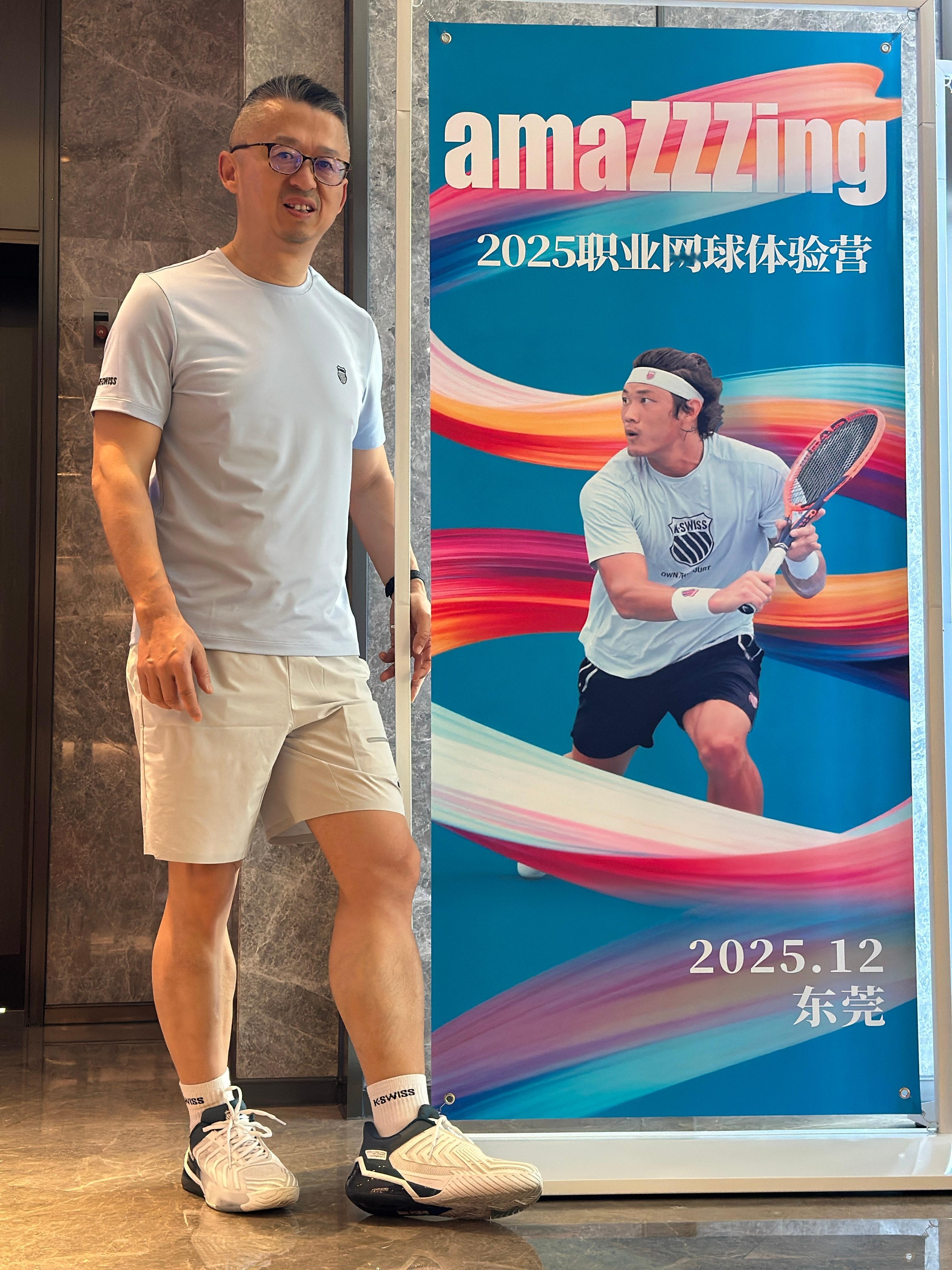 新球衣穿起,和张之臻这回职业网球东莞体验营海报上的球衣同款颜色,我感觉还得是我这件更amaZZZing材料非常轻便透气,适合东莞,此刻已经艳阳高照了;真的只能短裤短衣,我的无敌小腿无处掩藏也很喜欢袖口这种收口的设计,可以体现胳膊的围度。怎样才能有更大的围度呢?中老年健身爱好者当然早餐要吃好几个鸡蛋了——全蛋哦,蛋黄的营养比蛋白更好🥚然后再吃点坚果和玉米。早餐厅碰到了很多熟悉的面孔,张之臻、他的外教安东尼奥、体能师掌一兄。还有天津队担任教练的高鑫,资深的球迷应该记得,过去总和李喆搭档双打的那位。昨天还见到了王楚涵。刚刚在澳门夺得中国网球巡回赛总决赛男单冠军的孙发京,应该也快来了。 东莞