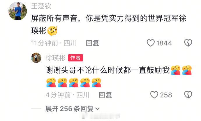 【王楚钦让徐瑛彬屏蔽所有声音】王楚钦说徐瑛彬凭实力得到世界冠军12月7日晚,国乒选手8比1在混团世界杯战胜日本选手,夺得混团世界杯3连冠!赛后,因此次夺冠成为国乒第120位世界冠军的运动员徐瑛彬发文总结比赛,他表示,成都之旅圆满结束通过自己的努力站上了世界顶级的舞台,也向大家展现了自己,通过这次的经历看到了自己的差距和不足,面对这样的赛场自己还远远差的很多。随后,王楚钦、梁靖崑、曹巍、闫安等运动员赶来为徐瑛彬加油打气,王楚钦说,屏蔽所有声音,你是凭实力得到的世界冠军徐瑛彬。王楚钦采访太霸气了