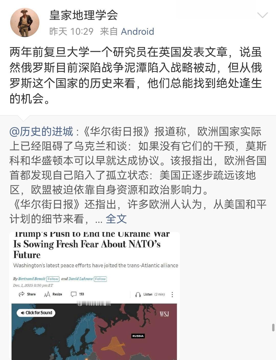 美国人希望保持一个虚弱的欧洲或俄国。 (如图所示)对于俄乌战争,美国人必然会放俄