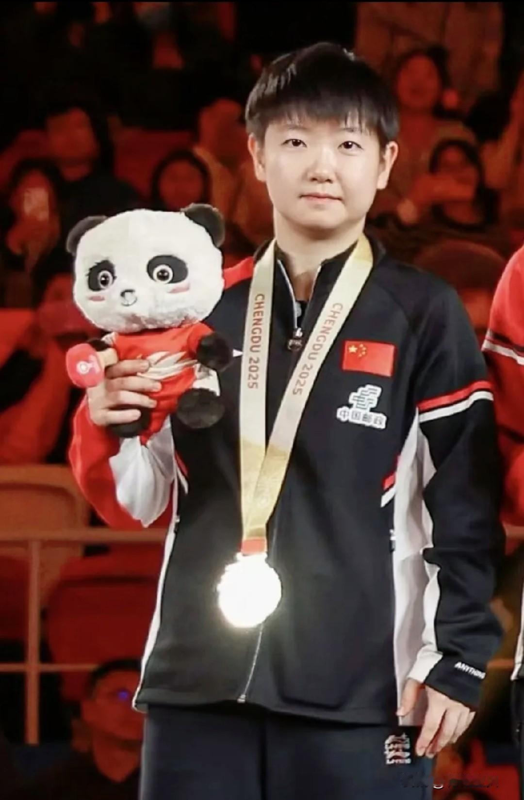 真是不服不行,这大概就是传说中的“自带主角光环”吧? 刚才刷到这图我鸡皮疙瘩都起来了。 你看大家都抱着熊猫公仔,那玩意儿胖乎乎的,很容易就把胸前挡得严严实实。 可偏偏就孙颖莎那块金牌,硬是从玩偶缝隙里“杀”了出来。 不光露出来了,还正好折射出一道亮瞎眼的反光! 你说这是巧合? 我倒觉得是老天爷都在给她打追光灯。 这就叫气运,哪怕站在边边角角,那种“该死的魅力”也是根本藏不住。 真的有点玄学在身上的,莎莎这金牌闪得,简直就是在宣告谁才是焦点。 太神了,这哪里是运气,分明就是命中注定要发光啊!