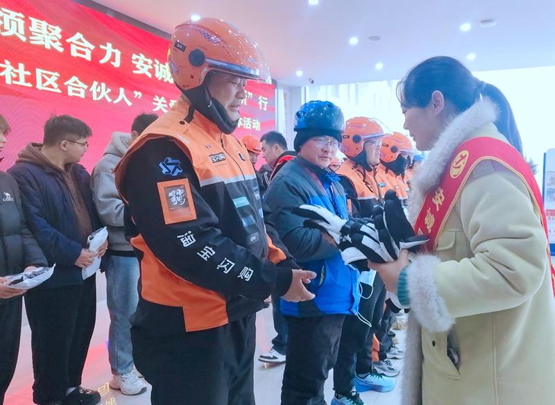 当日,薛阁街道马元社区联合“社区合伙人”安诚保险公司,开展“情暖寒冬关爱新就业群体”保暖手套发放活动,为辖区快递员、外卖骑手等新就业群体送上冬日专属温暖与贴心关怀。