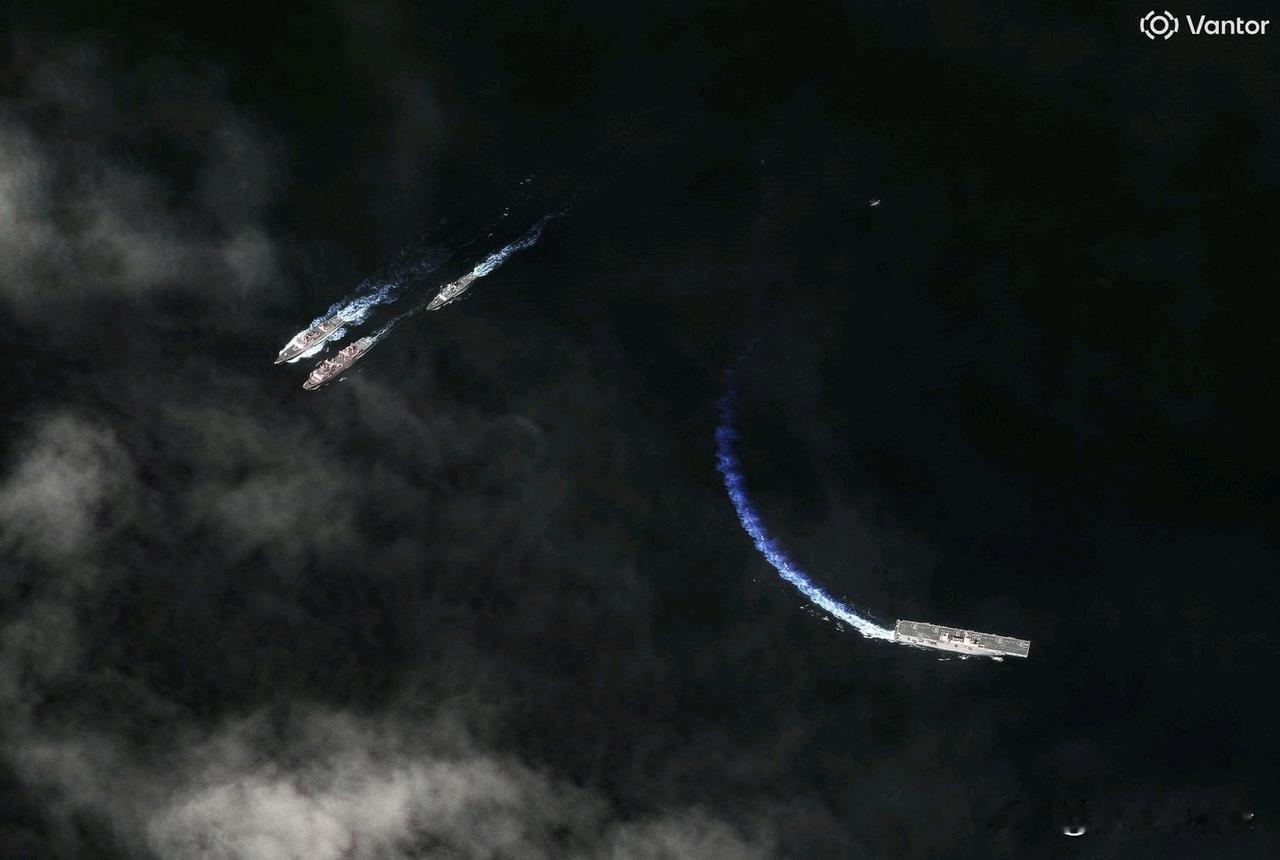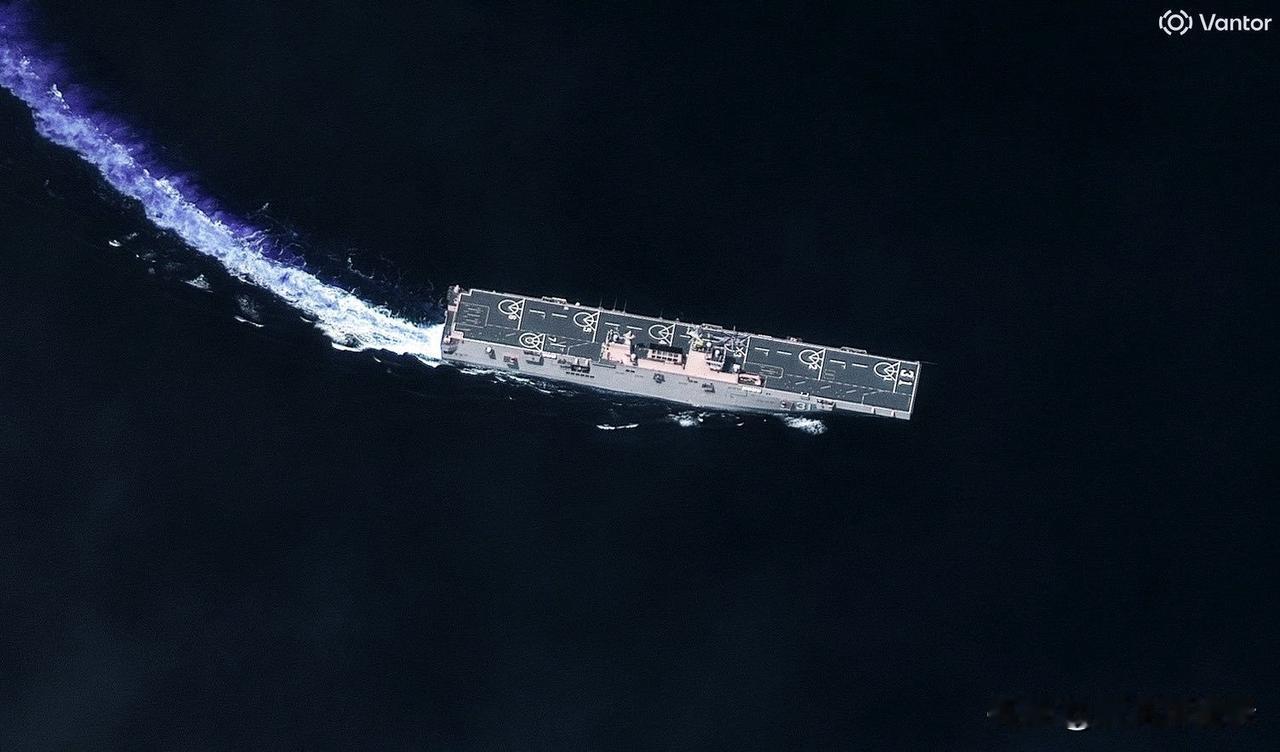 中国海军两栖打击大队编队远洋行 两栖编队组成: 075两攻舰海南舰 1艘 055驱逐舰延安舰 1艘 054A护卫舰 1艘 903A补给舰骆马湖舰 1艘 图是美国地理空间情报公司 Vantor 用高分辨率商业卫星捕捉到的,正在菲律宾海活动的中国海军舰艇编队,可见补给舰正在为2艘军舰进行一横一纵海上补给。 会不会土澳走一圈?