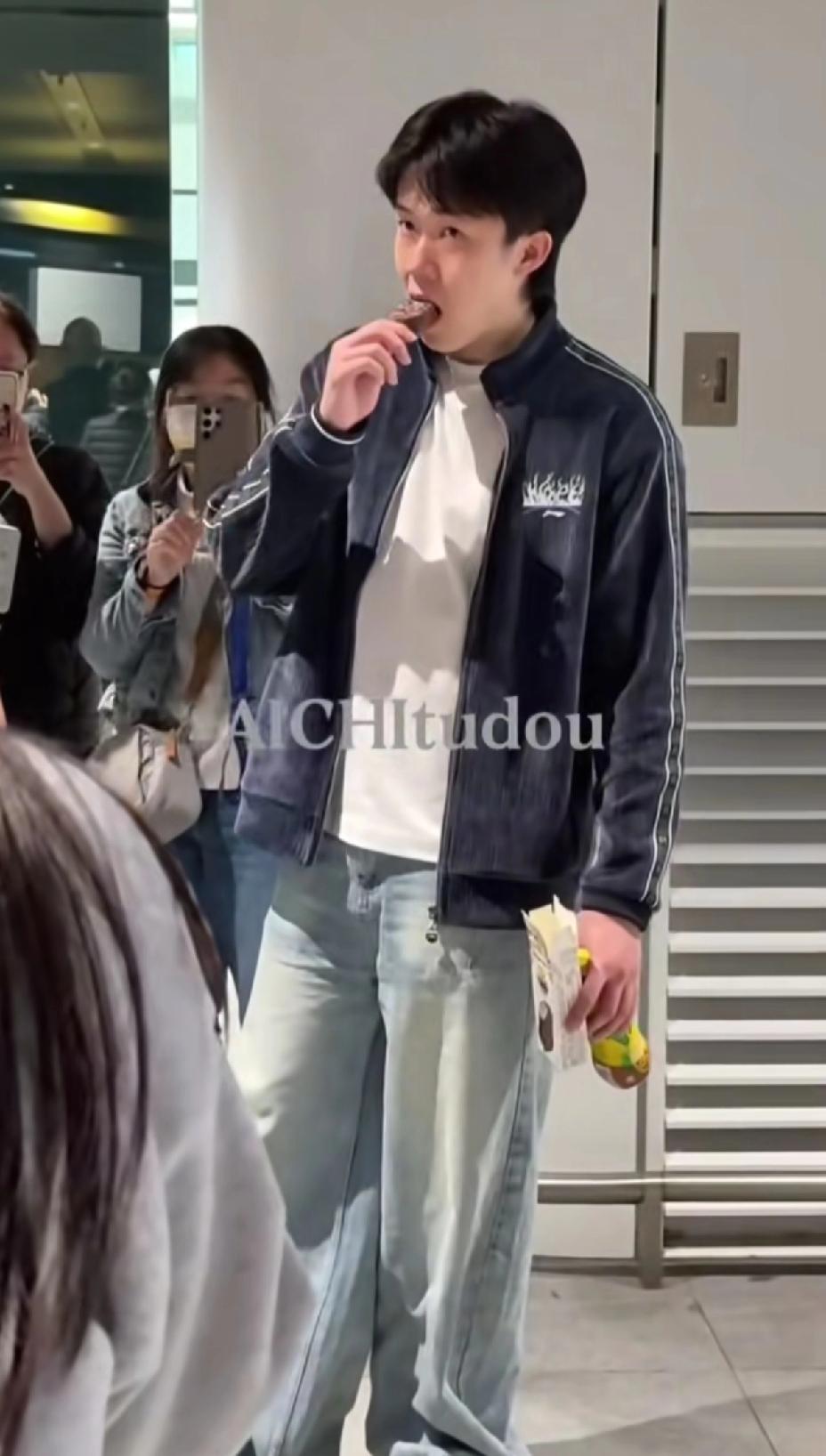 王楚钦一打开手机天塌了, 全网都知道他今天吃雪糕了。 大头这透明的一生, 吃个雪糕也能被围观拍照。 国乒到达香港, 可能是天太热了, 大头先整根雪糕吃, 他怎么做到的随意松弛感, 不顾别人的眼光, 还大大方方吃起雪糕来了。 网友调侃, 没办法, 除了厕所没人跟拍, 哪都躲不了。 大头肯定在想, 上班累死了, 吃个冰淇淋也拍, 随便你们拍我先吃了再说。 这估计又是大头的一个名场面, 这么多人围着看他吃雪糕, 太搞笑了。 (图片源自于水印)
