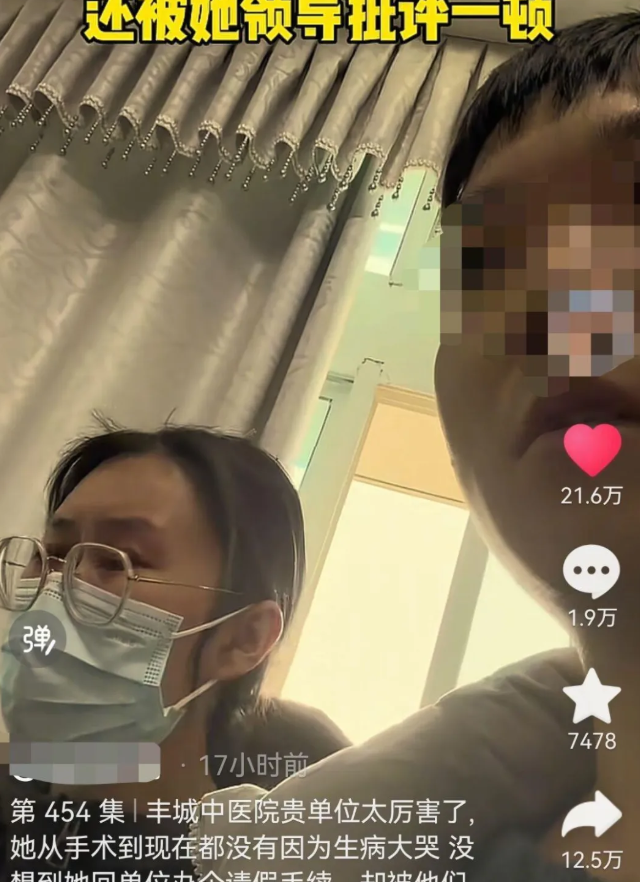 12月7日下午,网友“拓河秋树”发布视频称,她在宜春丰城中医院工作五年,因肺癌向医院请假却遭到拒绝,相关领导不同意请病假只给其开了事假条。该视频已获赞超21万。