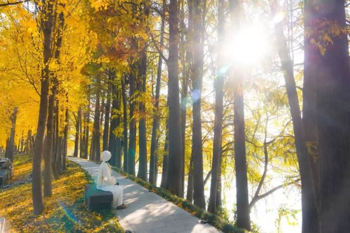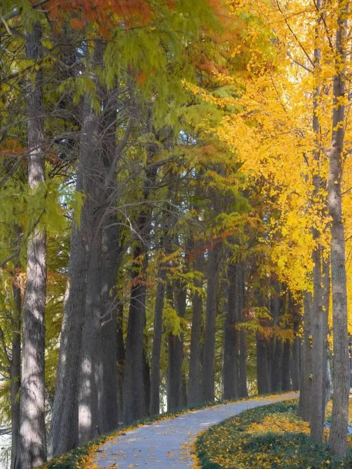 原以为冬日的萧索会笼罩四野,却不曾想,眼前竟铺开一幅"银杏与水杉"交织的暖色长卷。