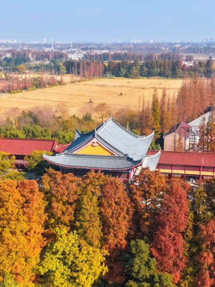 这座始建于隋朝的千年古刹,像一位隐士守在水畔。它曾辗转于江苏扬州和杭州孤山,最终在1996年于此落地生根。