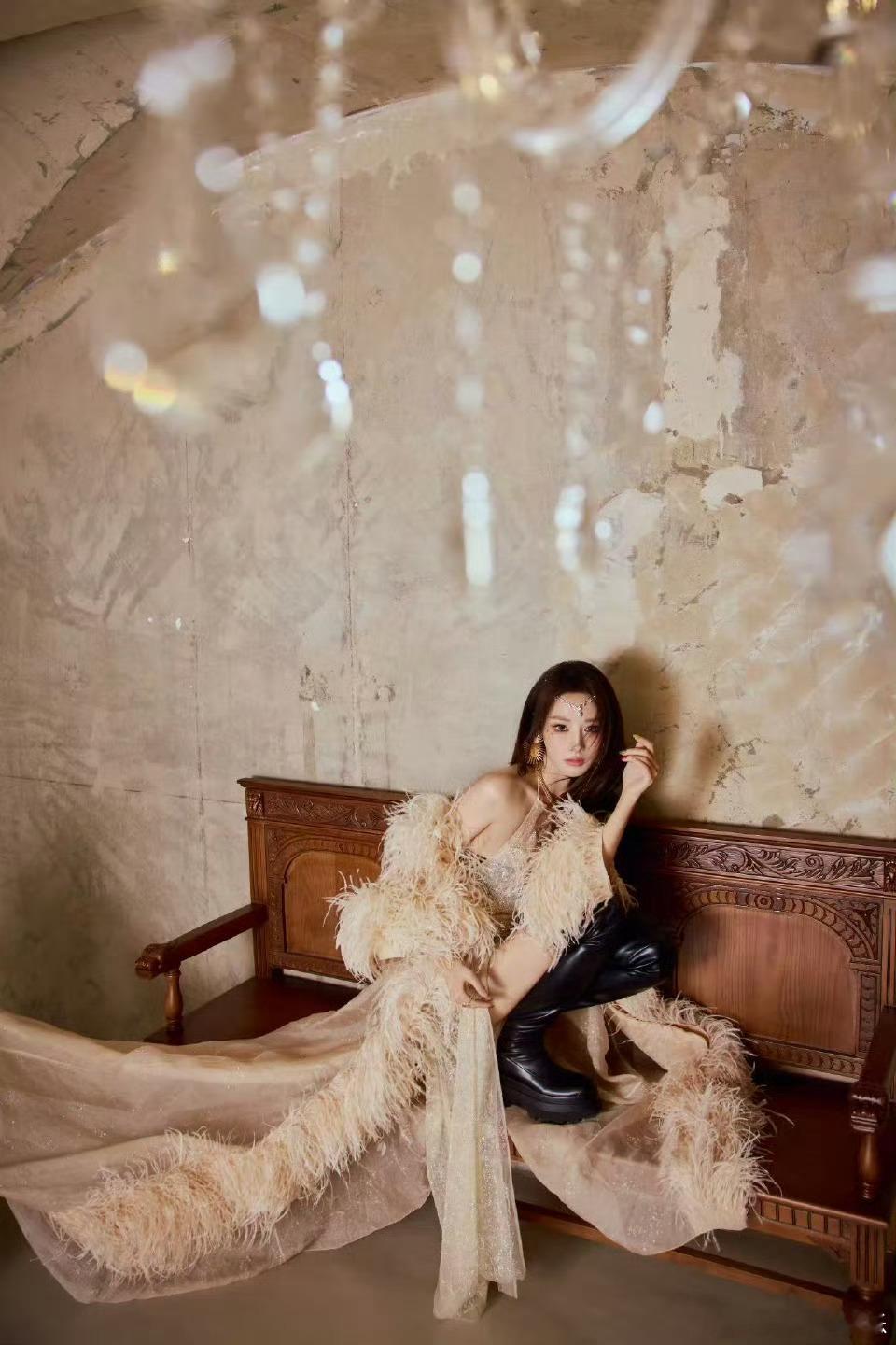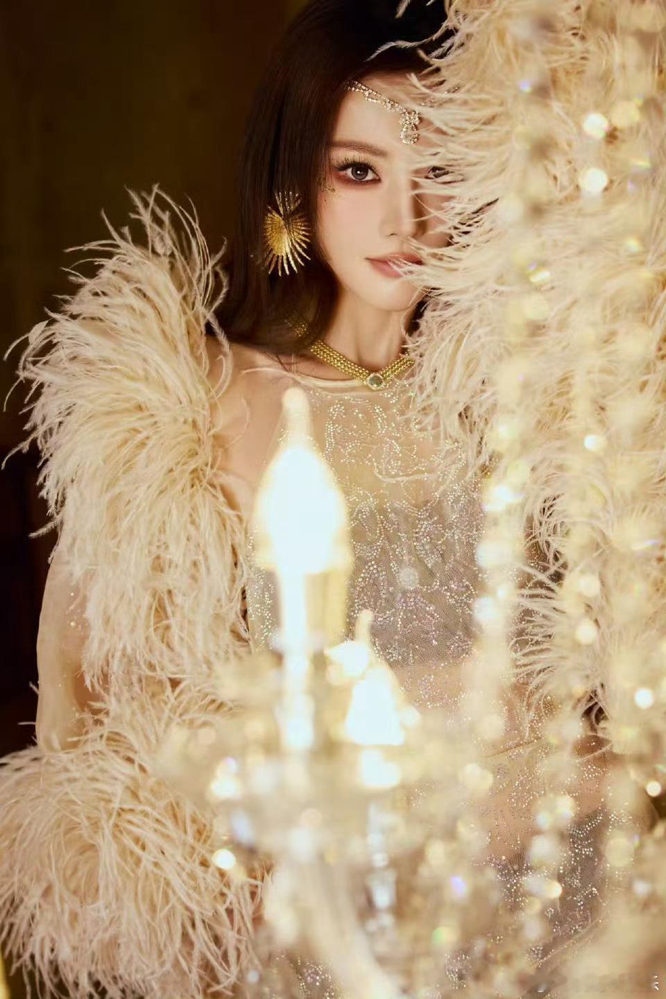 彭小苒身上披了几千根羽毛 vocal!这是什么神仙造型!几千根羽毛层层堆叠像被星