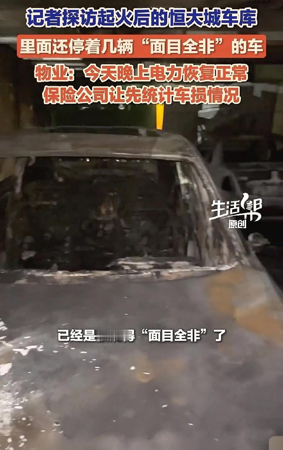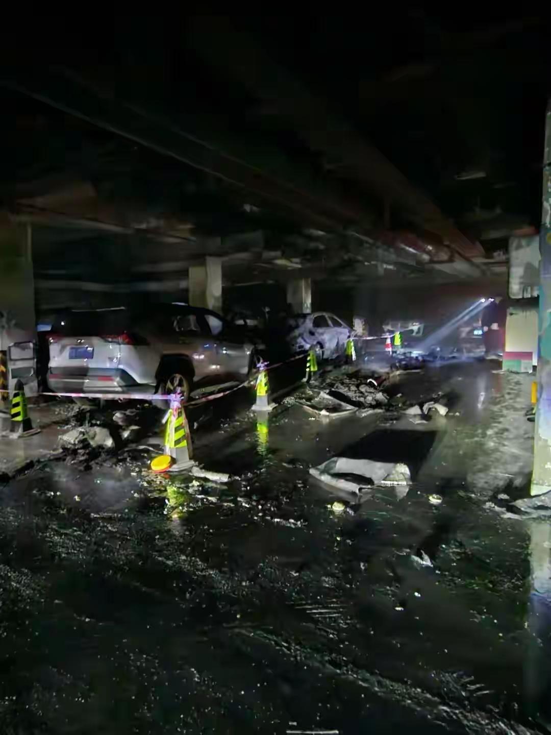 太吓人了!电动车燃烧爆炸竟引燃了小区地下车库的其他车辆。 山东济南恒大城地下停车