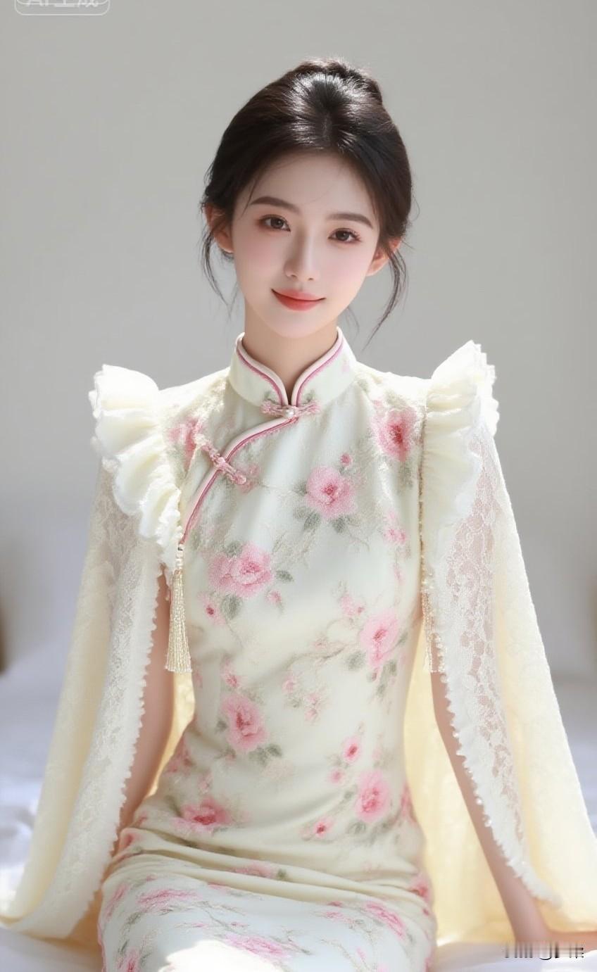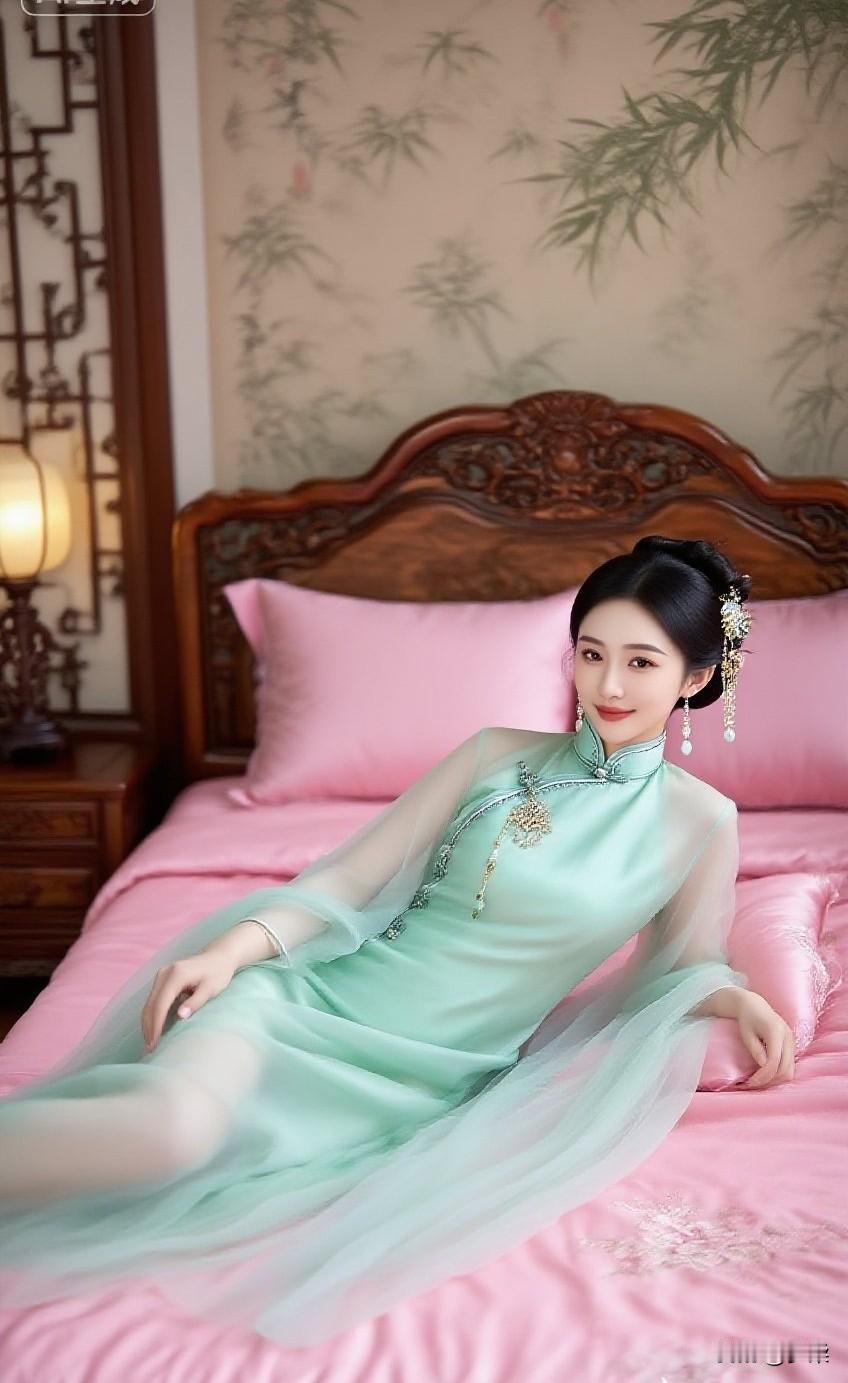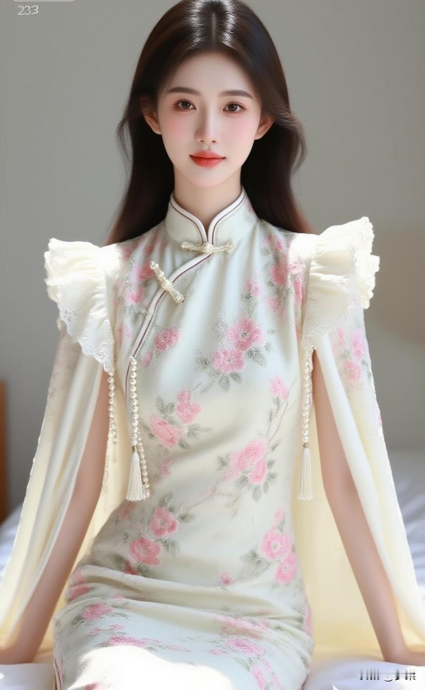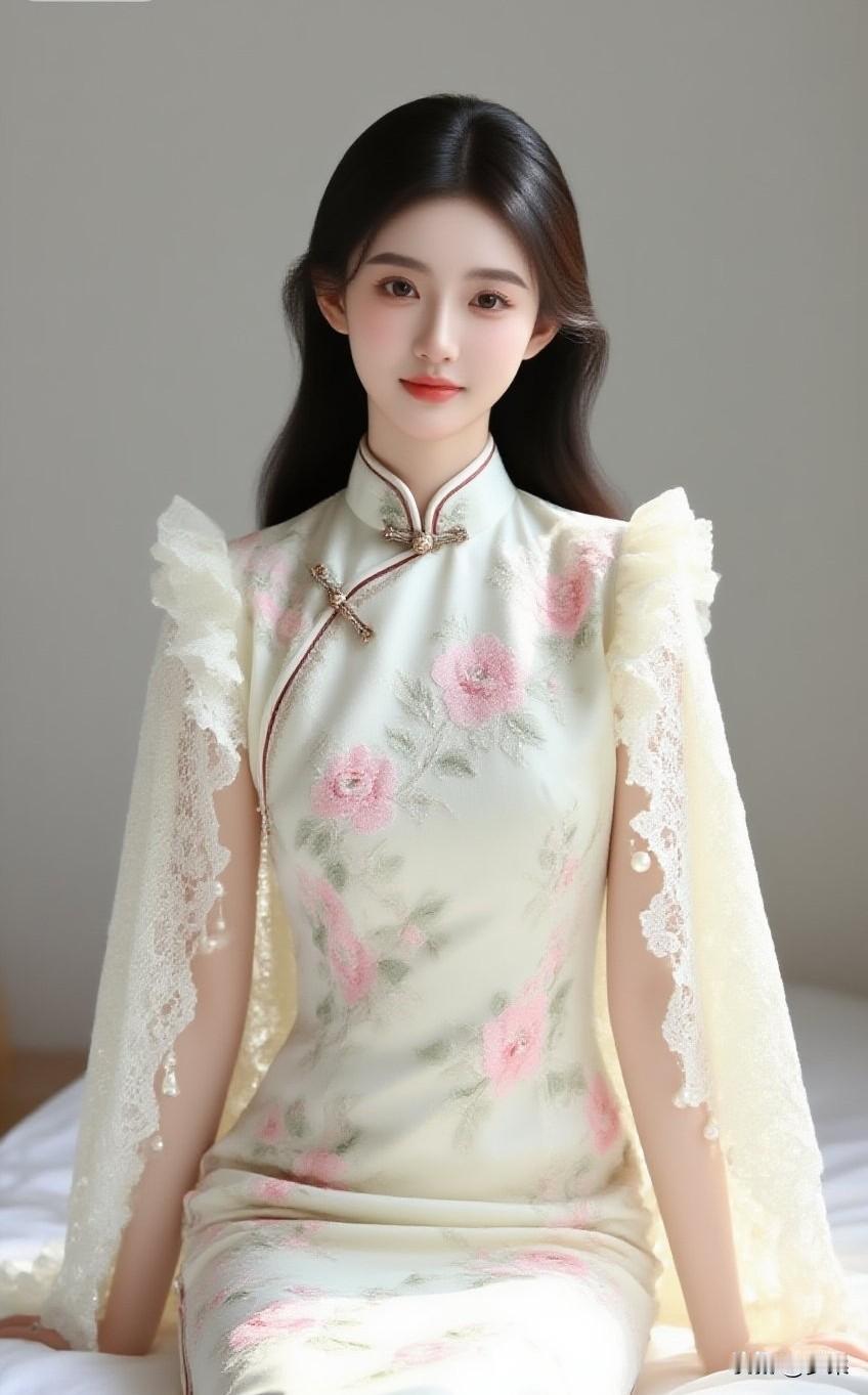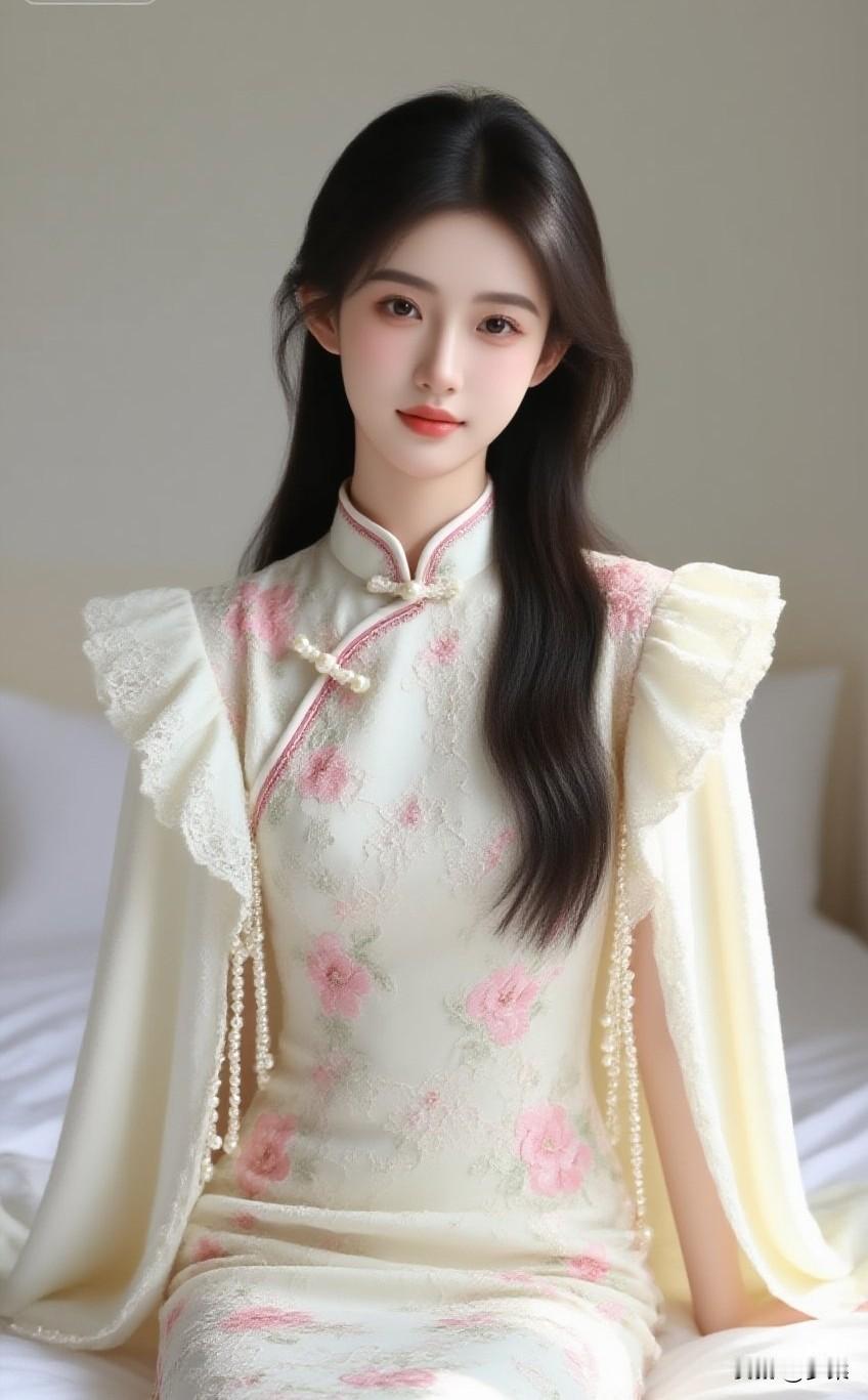 要让江南的风,先绕过粉墙黛瓦,再轻轻掀起这袭烟粉旗袍的裙摆。檐下光影碎在珍