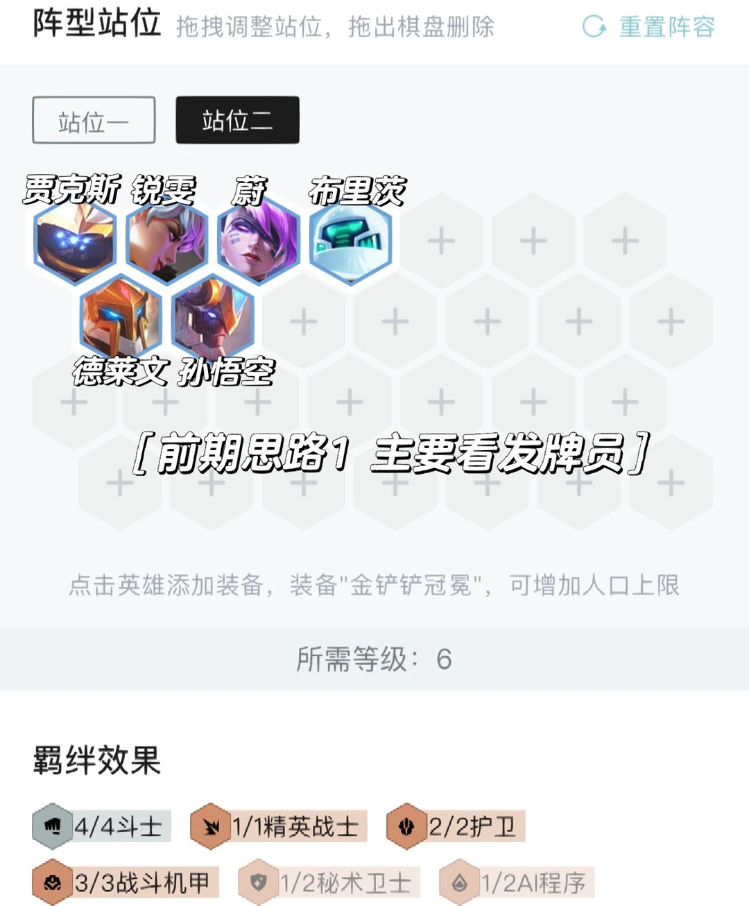 不是特别顺的局,7人口就必须抽牌,不要以为九五阵容就是埋头上人口,这是最大的误区。比较胡的局就在8人口搜牌,阵容小成型再锁血上9慢慢找橙卡二星基本就吃了。