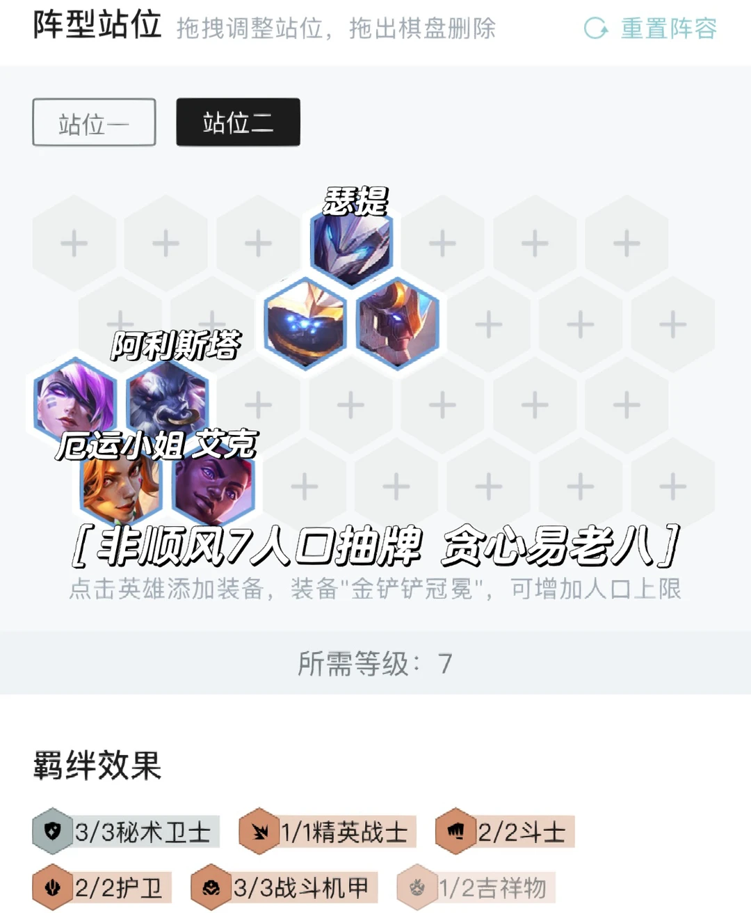 这个阵容需要多玩,切忌盲目上人口,血量低7人口也必须抽牌,血量健康8人口抽牌,直接上9除非是白银局或者胡的不能再胡十连胜以上可以考虑。