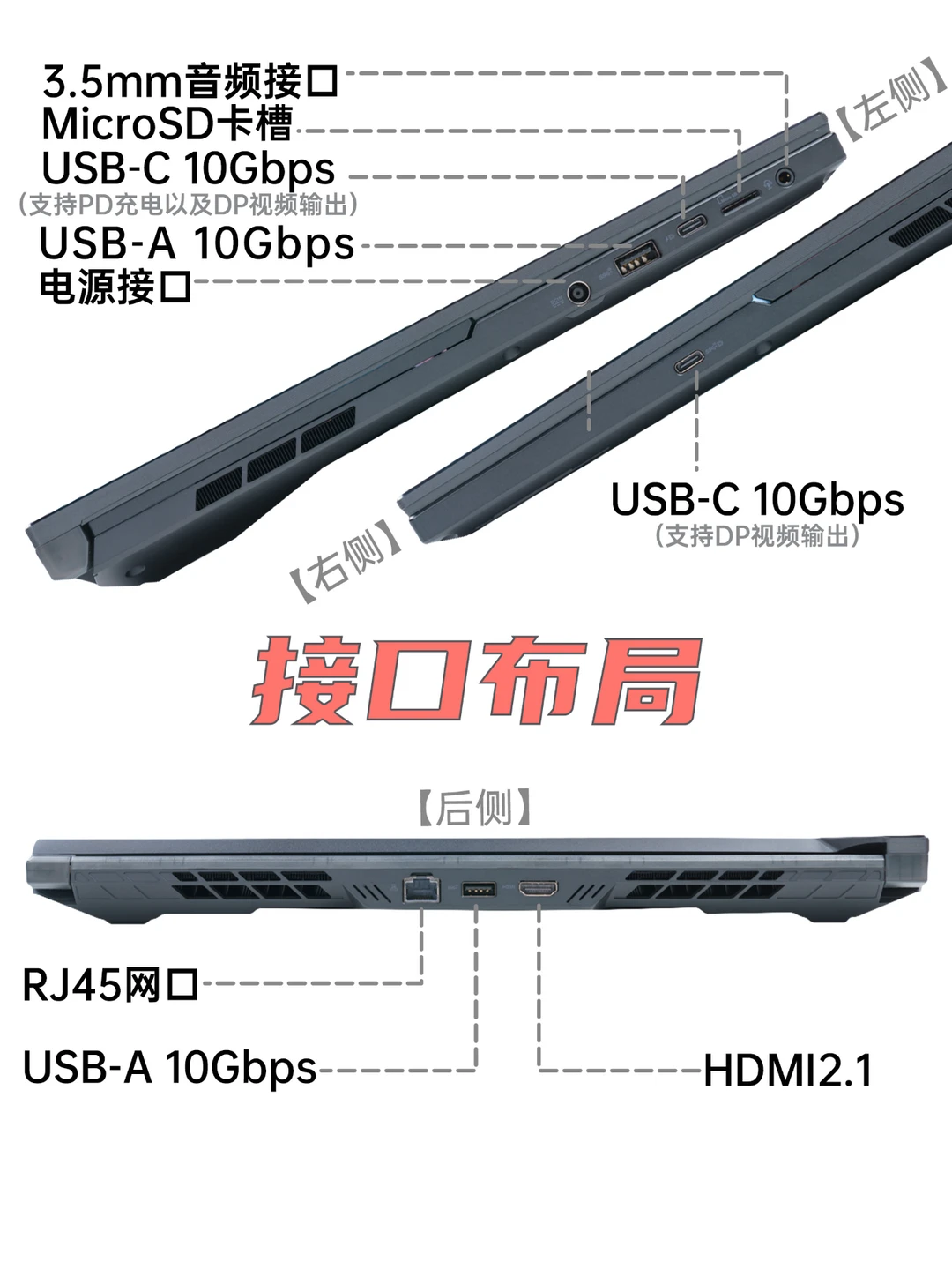 ❌USB-A接口数量较少