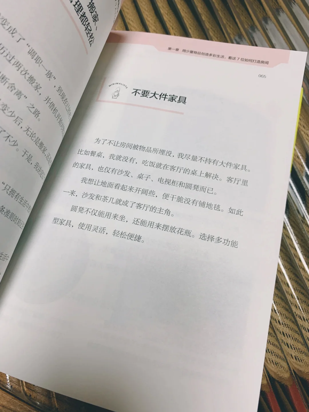 🌸学会极简的生活,有时候也是借此给自己留有更多的选择和余地去放置更需要的东西。所以这本书也是具有普适用价值的。