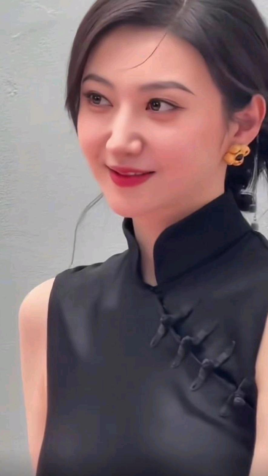 优雅旗袍少女,红唇与黑发相映成趣,古典韵味十足。
