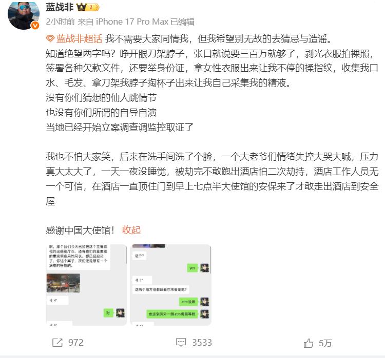 蓝战非在南非被华人绑架这件事,其实一点都不意外! 以前大家都很羡慕某某人在国外