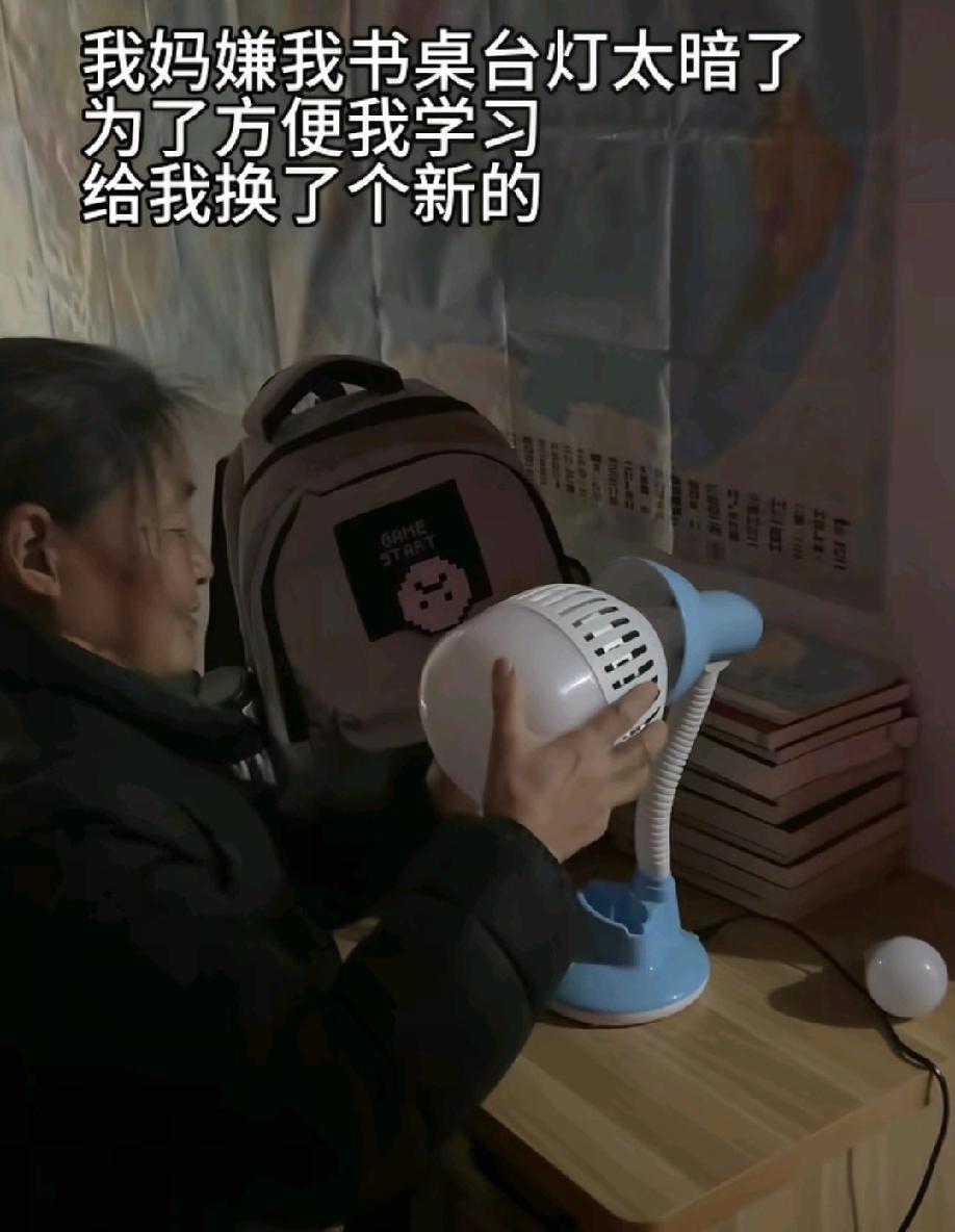 河南一妈妈嫌书桌台灯太暗,为了方便孩子学习,更换了一个新的灯泡。安装完,打开开关,天亮了。 这妈妈也太逗了,再也不用担心孩子学习了,眼前顿时一亮。做作业不仅得涂防晒霜,还要戴上电焊面罩了,不然随时有失明风险。 隔壁要是住着匡衡,都不需要凿壁偷光了。这灯亮起来,照亮不仅仅是书桌,还有孩子的人生,前途都被照亮了,而且是亮得可怕。 亲妈的爱很清澈,50v的爱太重了,孩子承受不住!