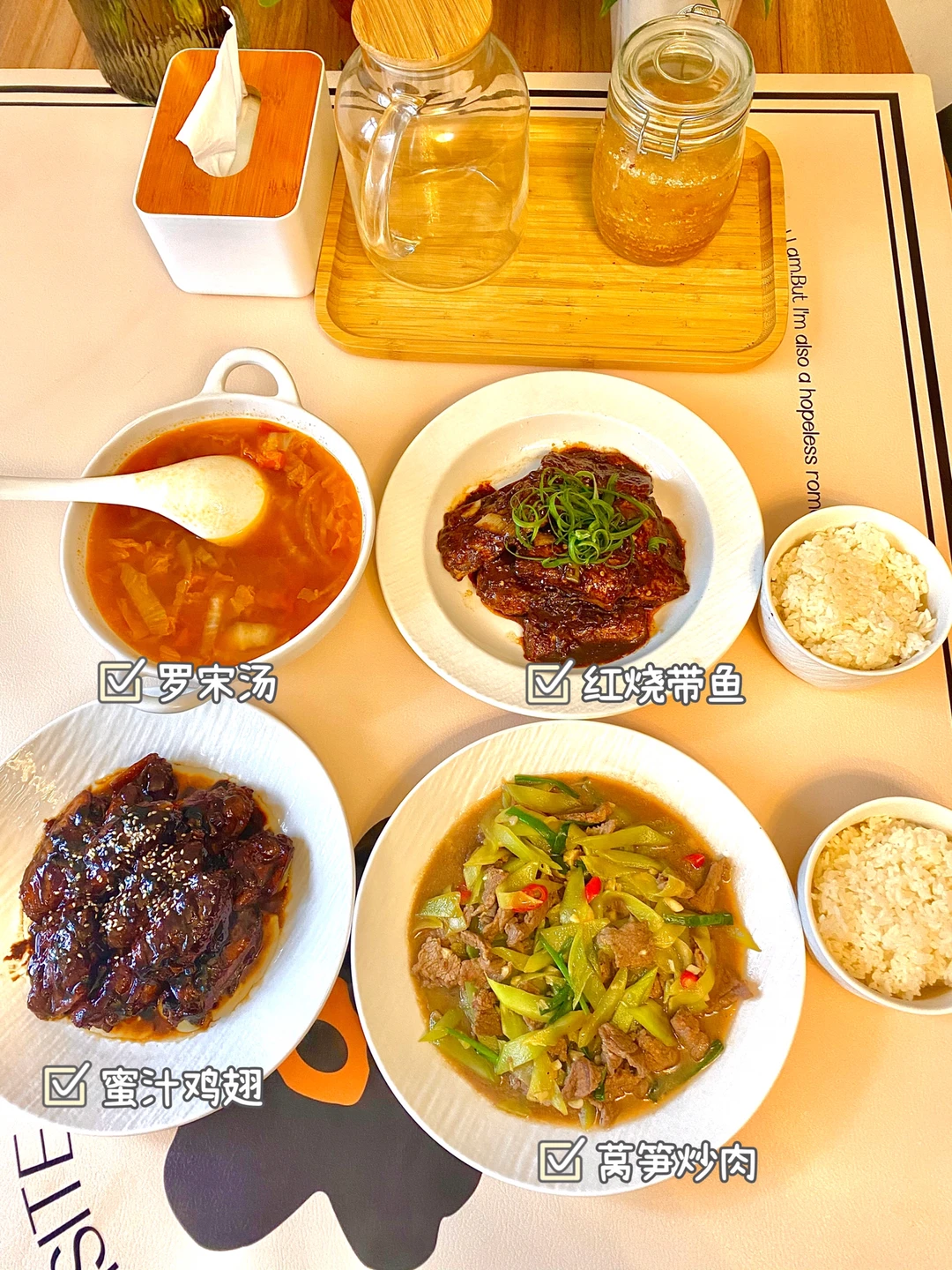 2⃣️蜜汁鸡翅、罗宋汤