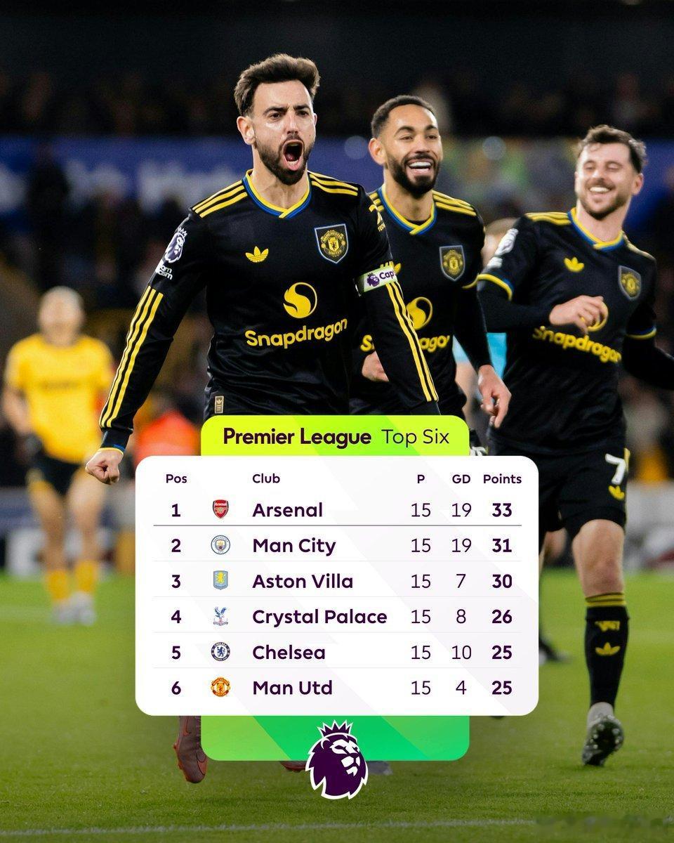 曼联客场大胜狼队,积分榜来到第六!距离第四仅差1分!最近9场5胜3平1负,最近5个客场3胜2平保持不败!