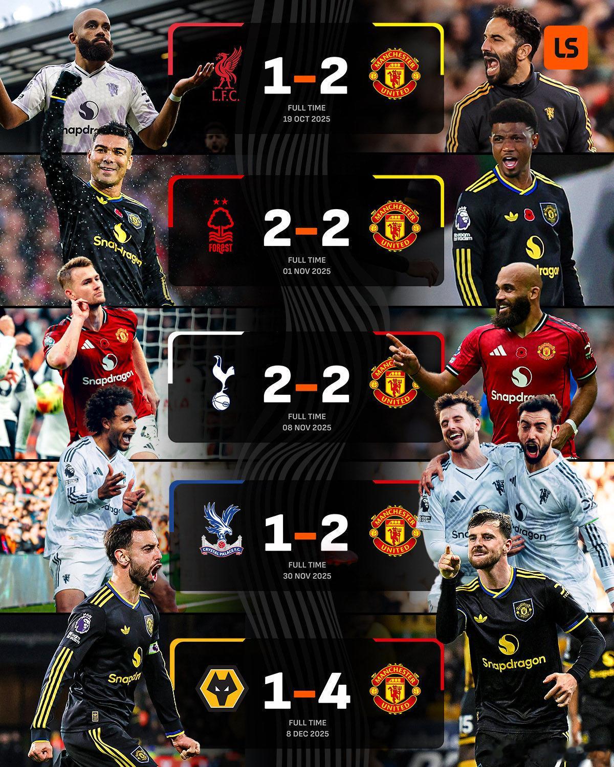 曼联客场大胜狼队,积分榜来到第六!距离第四仅差1分!最近9场5胜3平1负,最近5