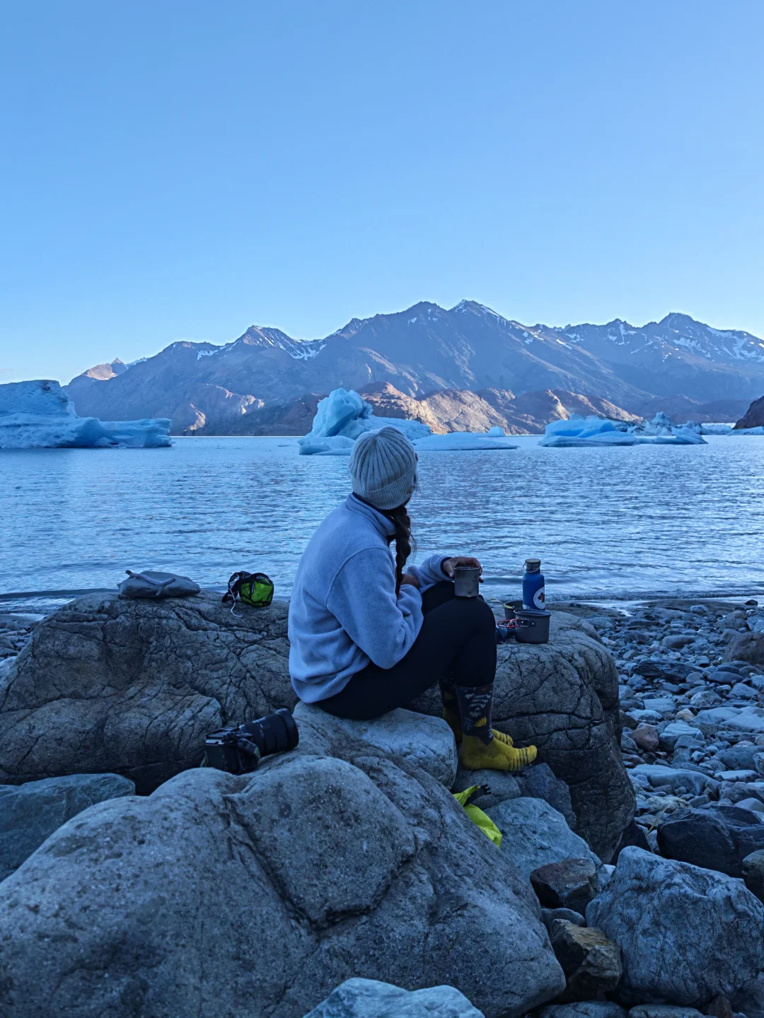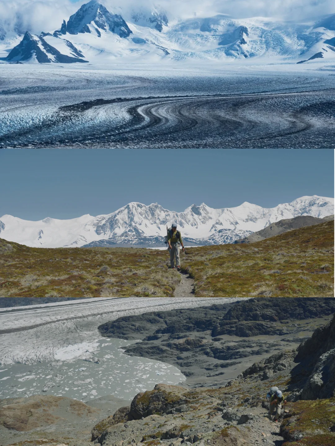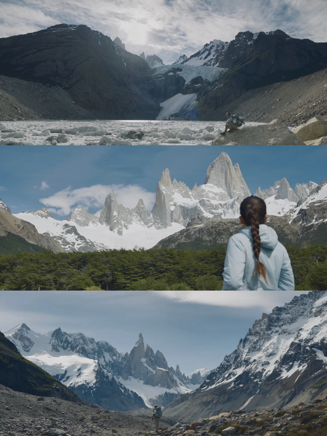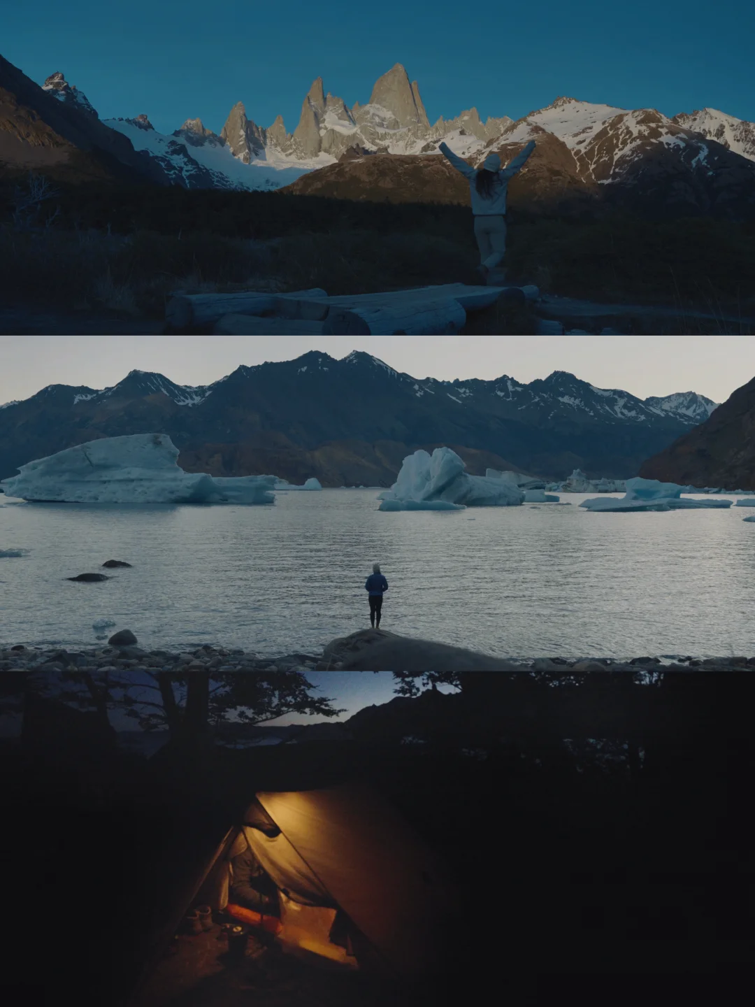 从南极出来后,似乎对风景的阈值被无限拉高,同时对人类社会产生厌倦,只想呆在安静的地方。于是我决定把南美洲剩下的时间都交给世界最南的荒原—巴塔哥尼亚。 p人没有约到百内营地,选择在阿根廷的patagonia呆一段时间,没想到却收获了绝美体验。 在阿根廷El Chalten,做了一场不愿意醒来的荒野之梦。 Huemul circuit 阿根廷巴塔哥尼亚的难度长线(64km)四天三夜,我愿称之为人生极致荒野。一路上经过两条河谷,两条山脉,两次高空滑索,每日1000米爬升。最让我激动的是我竟然能在平均海拔1000米的地方,看到亚洲4000+海拔才有的风景。对于习惯在国内高海拔徒步的我来说实属轻松。 当我们经历700米的碎石大坡爬上paso del viento,看到风景宛如南极的patagonia冰原,一切语言和感受都消失了,仿佛置身世界尽头。 在冰河世纪,这片冰原曾经覆盖整个智利南部,是除了南北极最大的冰原。 在最后一晚的冰川湖营地,我看到了在南极都没有看到的冰山翻滚! 在这里,每隔一会就会听到巨响,那是冰山翻滚和崩裂的声音。 在营地睡觉的时候,晚上被一声像惊雷一样的巨响惊醒,紧接着就是一波波巨浪的声音。 早上起来发现昨晚还在湖边的那个大冰山消失了,变成了一块一块小冰块。 经历了这段路线,才体验到Patagonia的精髓。很多人来el chalten,都只会呆两三天,徒步一些短线,也有人只是为了看一眼pata logo上Fitz Roy的轮廓。但他的精髓不只是这里。 我不在悔恨自己没有去百内国家公园了,因为相比起一营难求的百内,这里是真正的秘境,一路上遇到的徒步者不超过15个,每天住在同一个营地,我们都成为了朋友。 结语,巴塔哥尼亚的美属于敢于冒险的人。
