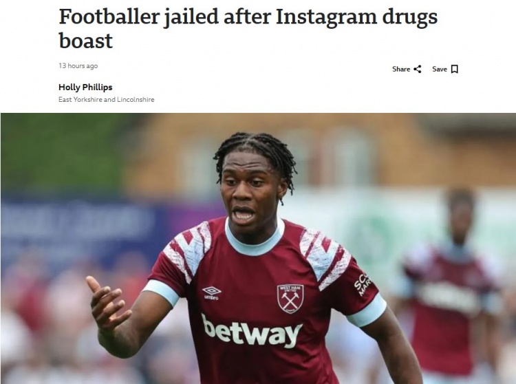 直播吧12月9日讯BBC报道,一名曾在Instagram上吹嘘贩毒的前西汉姆球员已被判入狱。