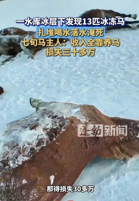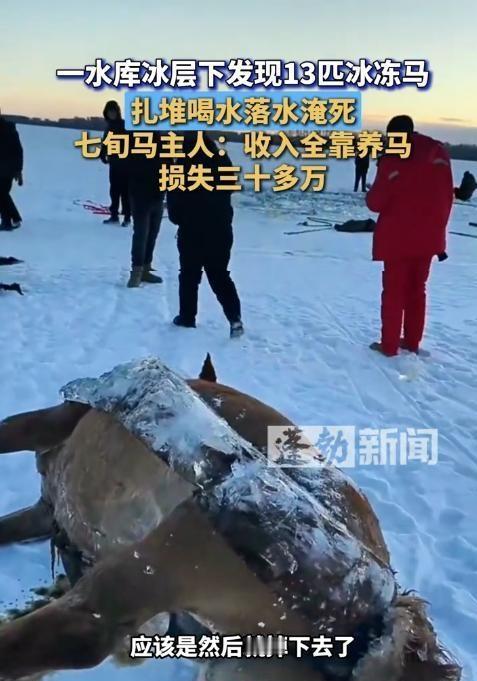 悲剧还是发生了!12月5日,黑龙江黑河,一村民养了10多匹马,天黑后,马自己出去找水喝,结果13匹马掉进湖里被活活冻死!村民得知后悲痛欲绝,这些马养了十多年,可因为没买保险,损失30多万。网友:为什么不买保险? 黑河,晚上七点多,气温零下二十七度。王大爷压根没听见冰裂的动静,等邻居找来,他跑到泉眼那边,手电筒一照,冰窟窿边上全是湿漉漉的马蹄印。水里那十几团黑影,早就冻住了。 王大爷当时就懵了,一屁股坐在雪地里,冰凉的雪碴子钻进裤腿,他都没感觉。这些马跟他亲得很,早上他给马添料,那匹老黄马还用脑袋蹭他胳膊,现在就这么冻在水里,身子硬邦邦的,看着都揪心。 他养这些马十几年了,家里里外外全靠它们。春天拉着犁杖耕地,秋天驮粮食,冬天没农活,就拉着爬犁去镇上帮人送货,挣点零花钱。儿子上大学的学费,都是这些马一点点“挣”出来的。 那天傍晚,他看马圈里的草料够吃,天也没黑透,就没把马拴牢,寻思着让它们在附近溜达溜达,啃点干芦苇。往常这时候,马自己就回来了,哪想到会出这档子事。 邻居气喘吁吁跑来说泉眼那边冰塌了,可能有马掉进去,王大爷手里的马刷子“啪”地掉地上,拔腿就往那边跑。离着老远就看见冰面上一个大窟窿,边上全是马蹄子踩的印子,水里飘着的马,身上都冻成冰壳了。 他想往冰上冲,被邻居死死拽住,“你不要命了?这冰还能站人?”村里的人都来了,拿镐头凿冰,可刚凿开一点,立马又冻上了。王大爷蹲在地上,眼泪一掉下来就冻成小冰珠,嘴里嘟囔着“我的马啊……” 有人说,咋不给马买点保险?王大爷红着眼睛说,去年有人来村里说过这事儿,他觉得马好好的,买保险是瞎花钱,几百块钱还不如给马买袋好豆子。现在好了,十多年的心血,三十多万,全打了水漂。 这事儿说白了,就是老百姓过日子太实在,总觉得不好的事儿轮不到自己头上。可谁能想到呢?这冰看着结得挺厚,底下说不准就有空子。保险这东西,平时看着没用,真出事了,多少能帮衬点。 各位读者你们怎么看?欢迎在评论区讨论。