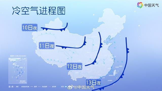 从降温进程来看,10日西北地区将率先降温,11日降温范围覆盖长江以北大部地区,12日至13日降温波及江南、华南。14日至15日早晨,最低气温0℃线将南压至江南北部一带。
