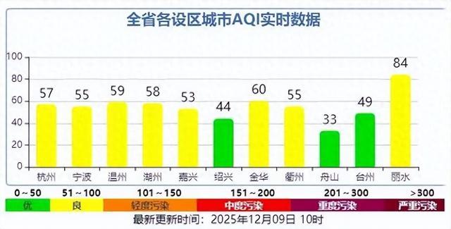 随着冷空气过境,今天不仅灿烂的阳光上线,全省各地空气质量也明显转好,舟山、绍兴、台州已经达到优。