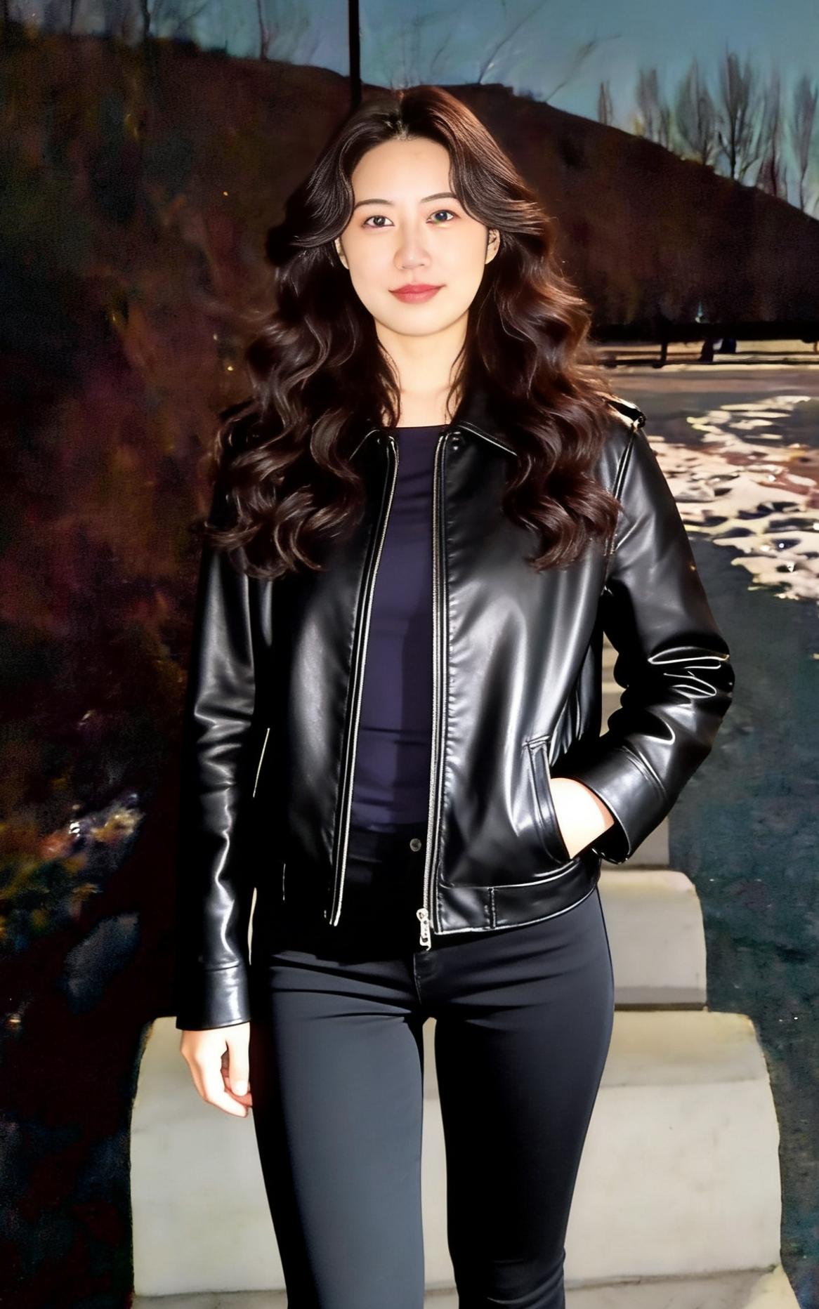 路灯把影子揉进石阶的褶皱, 黑色皮衣裹着晚风的形状, 牛仔裤边沾了星子的碎屑—— 是夜太轻,还是脚步太缓? ~ 身后的山蜷成昏暗的轮廓, 枯树的枝桠挑着半片云朵, 那点未融的雪,是冬遗落的信笺, 被月光拆成细碎的银箔。 ~ 她站在那里,像帧未完成的镜头, 呼吸是背景音里的浅潮, 所有的情绪都浸在夜色里, 不浓,不淡,刚好够藏起一段静闲。