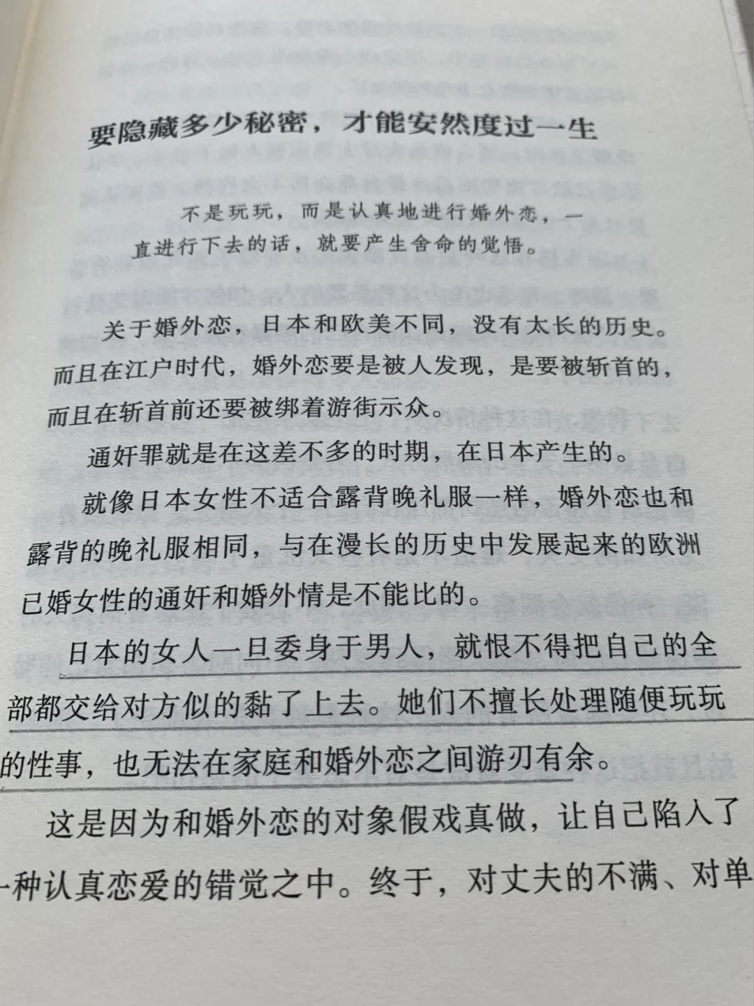 恋爱结婚之所以容易失败,是因为双方希望这合二为一的结合感和甜蜜感细水长流,而不承认彼此之间隔着一条河川的间隙。