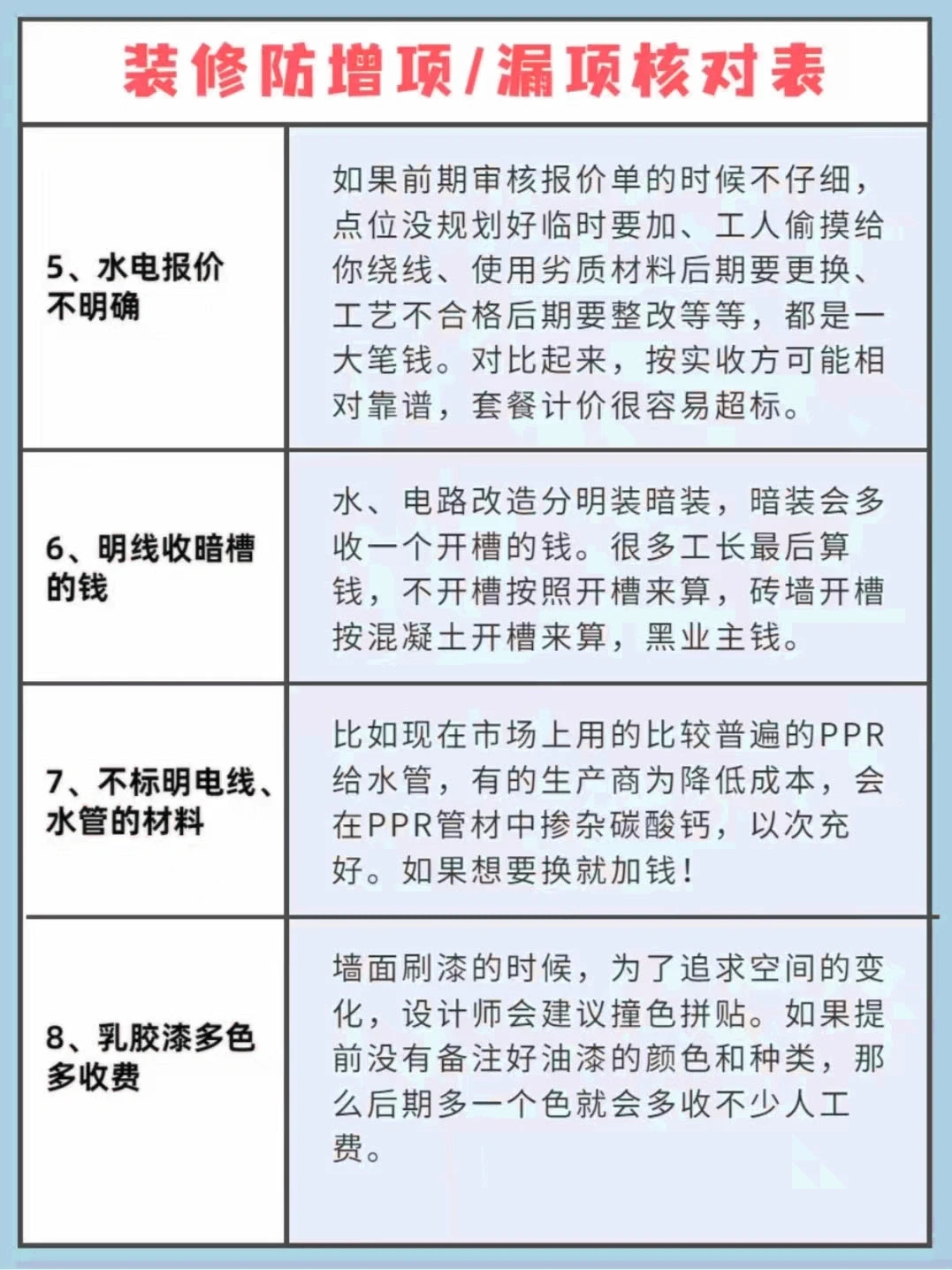 没有装修过的小白很容易被装修合同中弯弯绕绕的小九九坑到,一个不注意就亏💰💰啦!!所以我们在签装修合同之前一定要仔细查看事项!确定有没有增项漏项‼️一定要看清楚再签字‼️