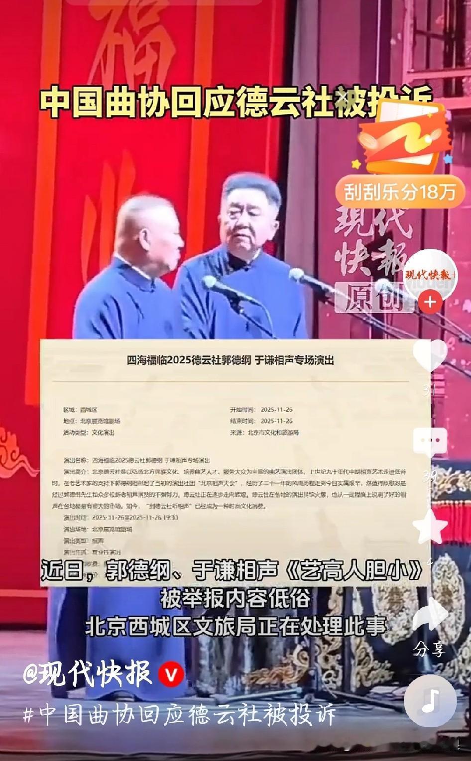 我真看懵了!郭德纲和于谦的老相声《艺高人胆小》,居然被人举报说低俗、抹黑国营院团