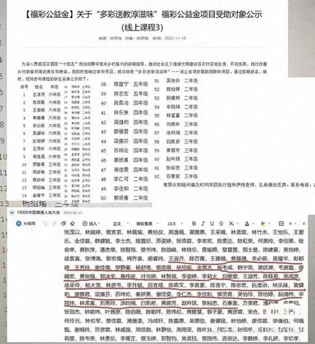 2022年11月,作为“线上课程受助对象”,他们出现在杭州师范大学人文学院的福彩公益金项目里。