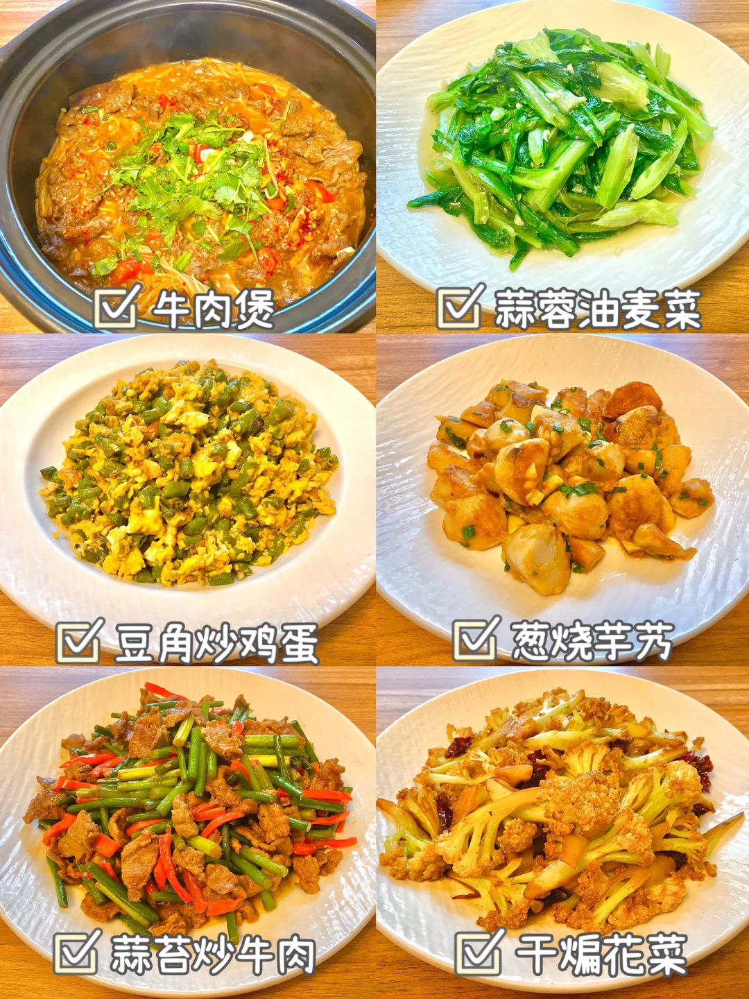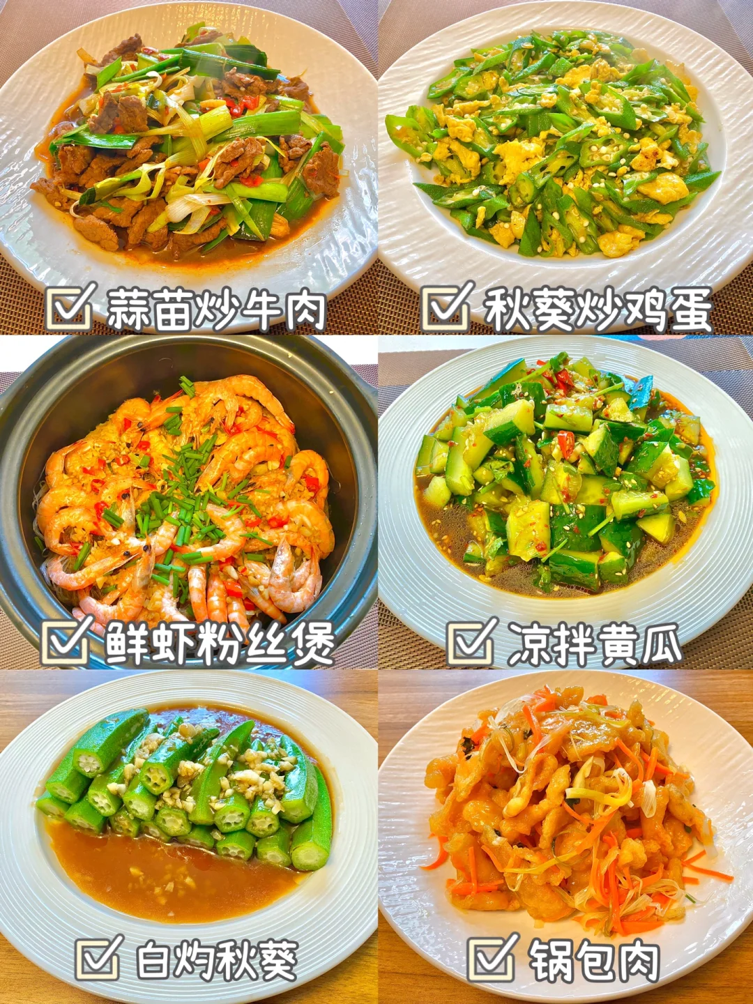 蒜苗炒牛肉、秋葵炒鸡蛋