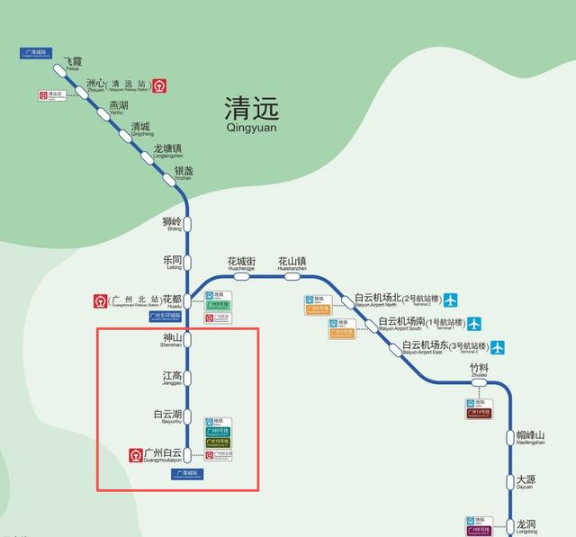 广清城际南延线全长22公里,从花都站向南依次设神山站、江高站、白云湖站、广州白云站,4座车站均在广州市境内。