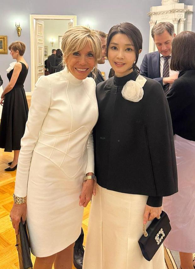 当年马克龙夫妇与金建希夫妻合影,金建希那是真显年轻,可惜如今她在狱中过日子了。还