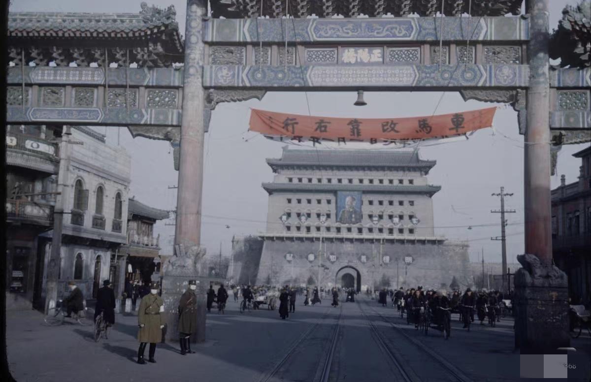 这是一组民国时期的老照片,从照片中我们能看到故宫,正阳门,天坛等景观建筑,还有围坐着喝茶的大爷们,包饺子的大娘们,卖衣服被子的小摊贩,哄孙子的老爷爷,拉外国客人的人力车夫,比较显眼的是正阳门下的横幅:“车马改靠右行”,说明那时候也开始接轨国际,靠右行驶。