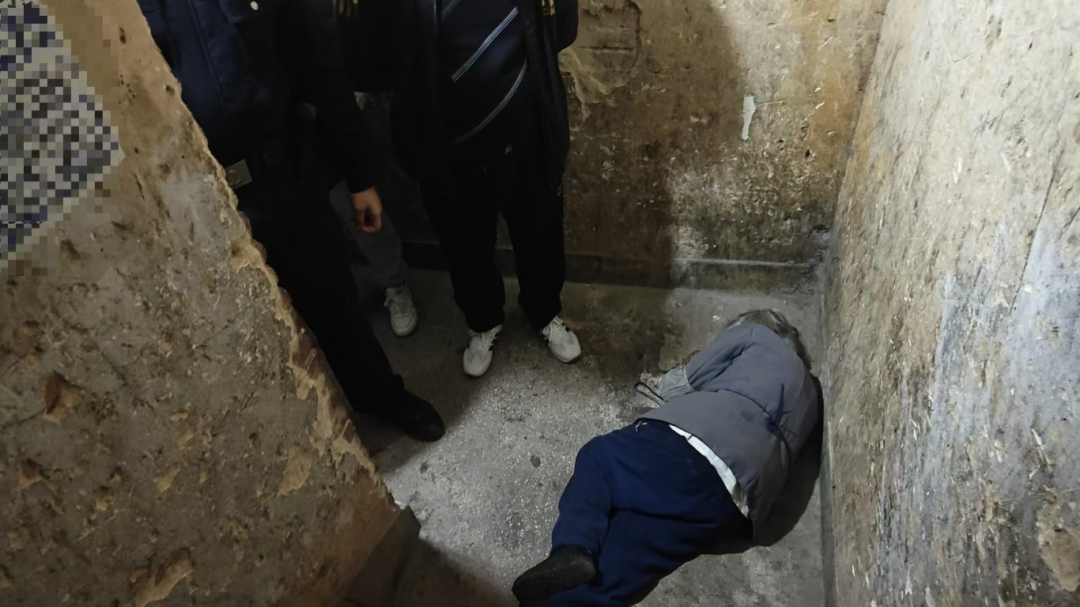 接警后,值班民警祝睿康迅速响应,带领辅警张生威携带AED(自动体外除颤器)赶赴现场。到达居民楼后,民警发现一位头发花白的老人倒在楼梯转角处,意识尚清但表情痛苦,无法自主行动。