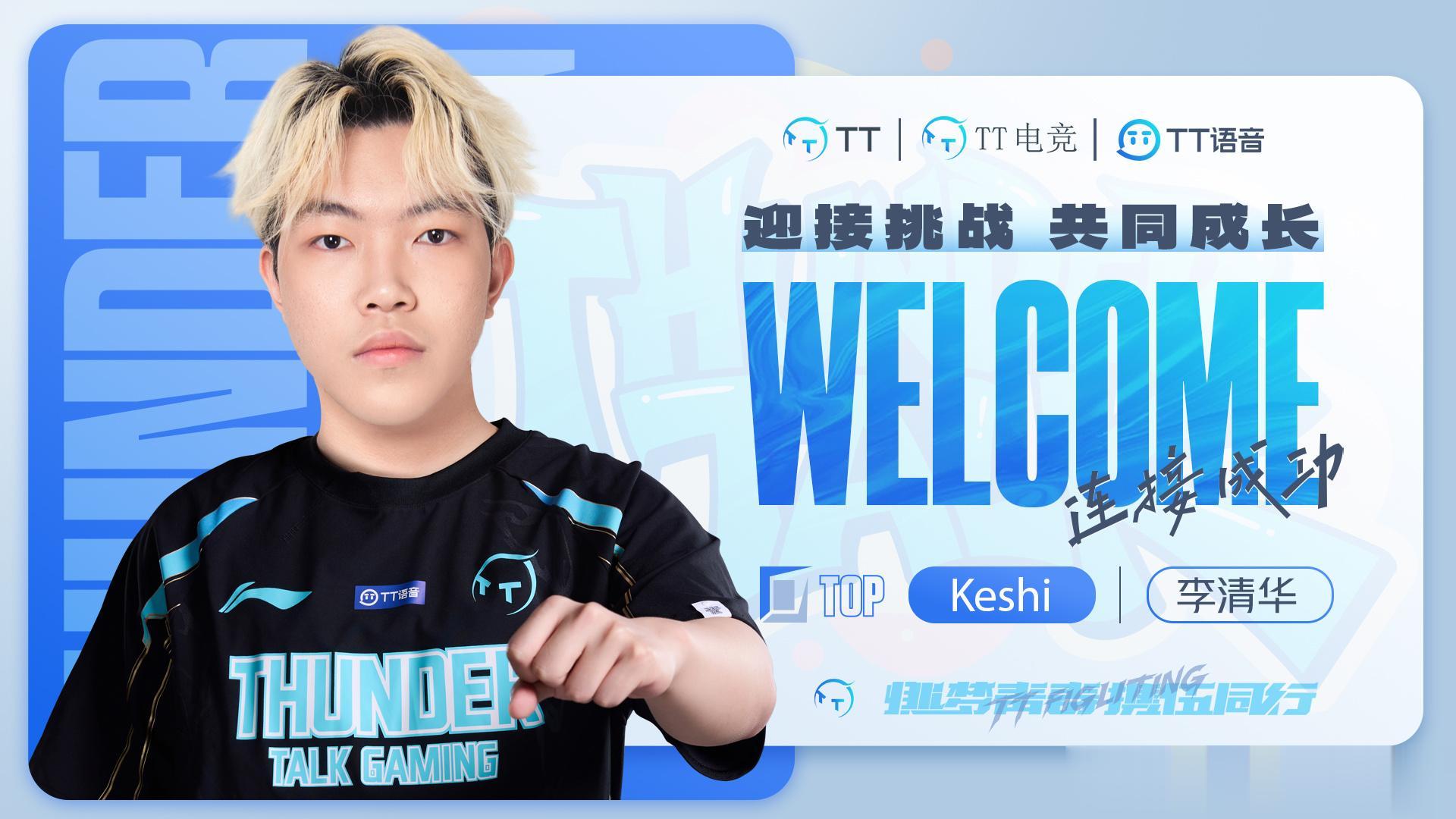 经双方友好协商,我们很高兴地宣布:即日起,选手李清华(ID:Keshi)正式加入TT英雄联盟分部,担任上单位置。