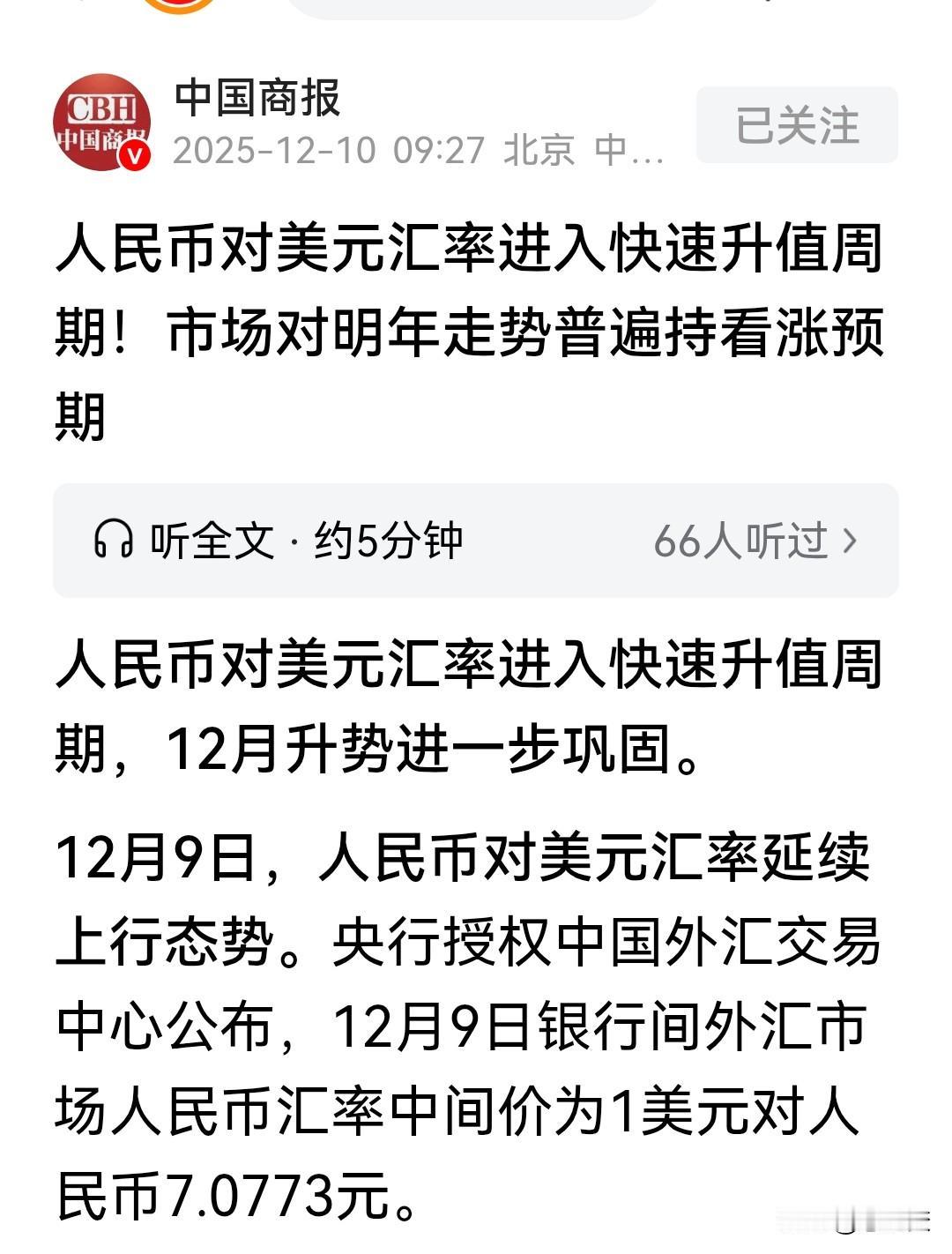 预计2026年人民币将进入6时代。钱更值钱了! 对老百姓来说利好!