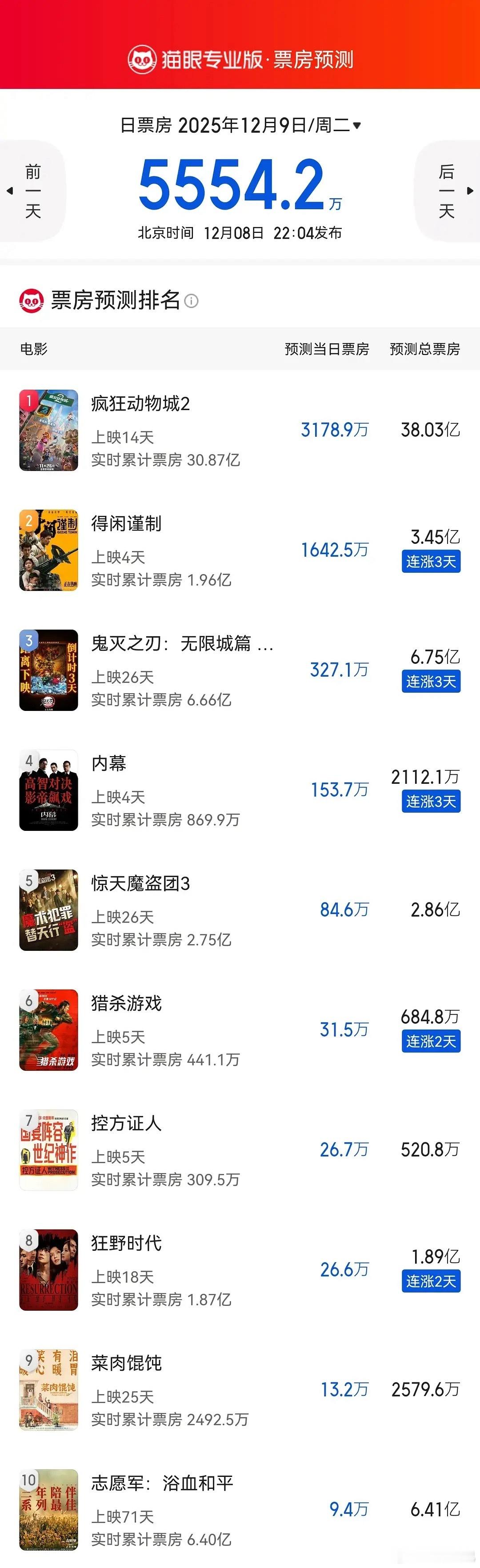 得闲谨制工作日又又又正挂16个点,票房预测连涨三天