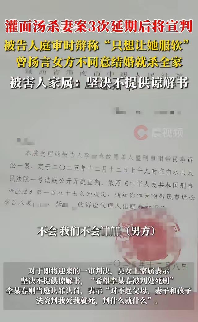 陕西渭南,男子和妻子发生争执,凌晨时分男子用皮带、钢尺、菜刀等殴打妻子,还将她按进六七十度的煮面锅里致死。案发后男子狡辩称,他没有家暴,只是喝多断片了想让妻子服个软。可据检测,男子血液酒精含量仅为37mg/100ml。 据潇湘晨报.晨视频报道 那个凌晨发生了什么,外人很难完全知晓。但现场留下的痕迹让人脊背发凉——皮带、钢尺、菜刀,最后是滚烫的煮面锅。温度计显示六七十度,足以造成严重烫伤,而他却将妻子的头按了进去。 “喝多了,断片了,只想让她服个软。”这是男子事后给出的解释。可检测报告上每100毫升血液酒精含量37毫克,这是什么概念?大约相当于一罐啤酒的量,离“醉酒”还差得远,更别说“断片”。 家庭争吵哪家没有,但升级到用菜刀、用热锅,这早已超出“争执”的范畴。看看那些作案工具,哪一件是临时抓起?皮带要解,钢尺要找,菜刀要拿,更别说那锅滚烫的面汤。 我查了查这起案件的背景,事情发生在渭南一个普通家庭,夫妻之间早有矛盾。邻居说偶尔能听到争吵,但谁也没想到会发展到这一步。一个活生生的人,在深夜的家里,被最亲近的人用最残忍的方式夺去了生命。 “让她服个软”,这话听起来多轻巧。可服软的代价是什么?是皮带的抽打,是钢尺的挥击,是菜刀的威胁,最后是在热汤里的挣扎。这哪里是想要对方低头,分明是要彻底摧毁。 酒精成了他第一块遮羞布,可惜科学检测不认这套说辞。37mg/100ml,开车都够不上醉驾标准,却能成为施暴致死的借口?那些工具不会说谎,伤痕不会说谎,逝去的生命更不会说谎。 家暴从来不是“家务事”,而是赤裸裸的暴力犯罪。多少施暴者事后找尽借口——喝多了、冲动了、她先惹我的。可暴力就是暴力,不会因为发生在卧室里就变得情有可原。 本月12号,法院就要宣判了。一条人命,一个家庭,一场因为“争执”引发的悲剧。那个夜晚的真相,绝不会是“喝断片了”这么简单。 各位读者你们怎么看?欢迎在评论区讨论。