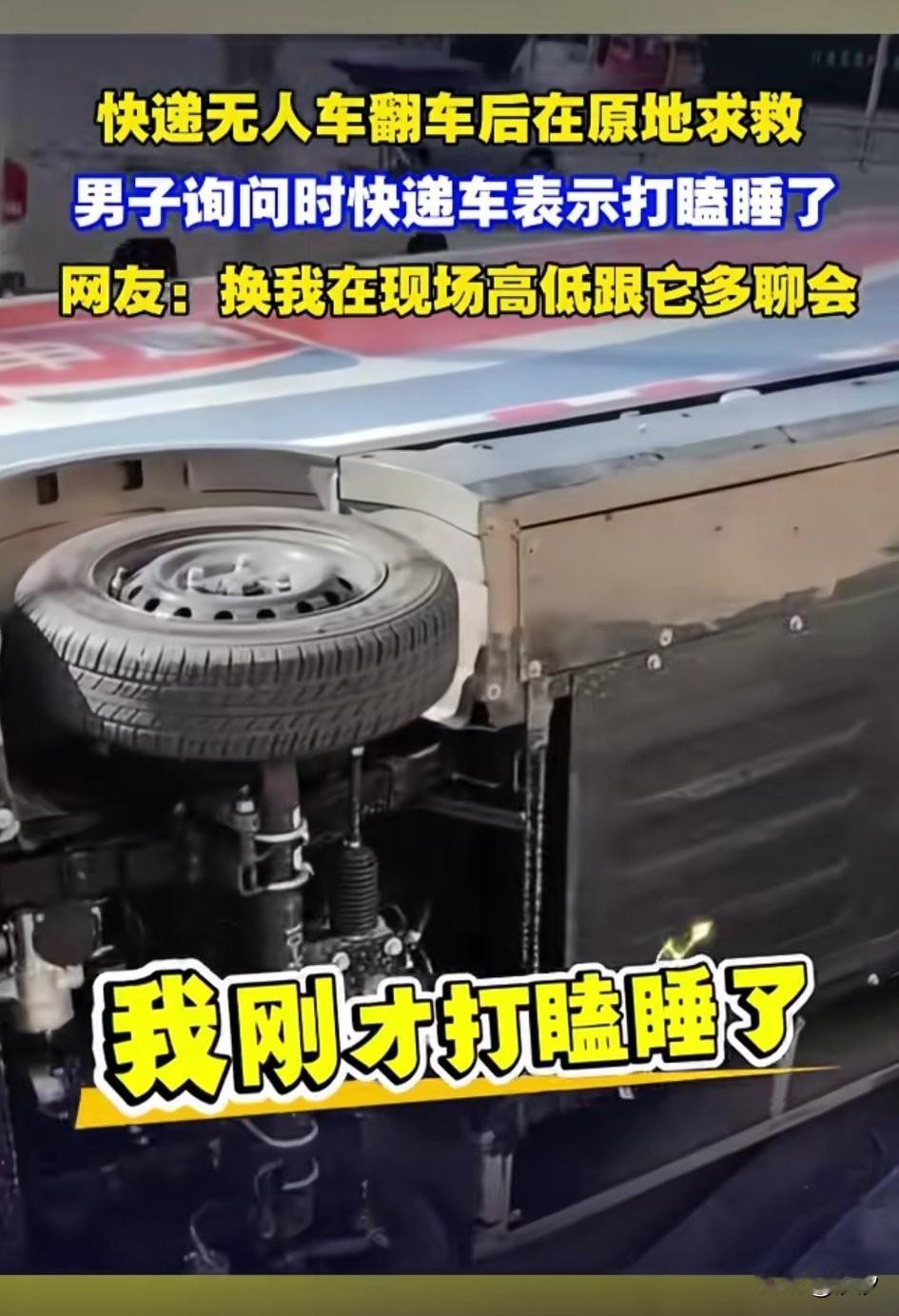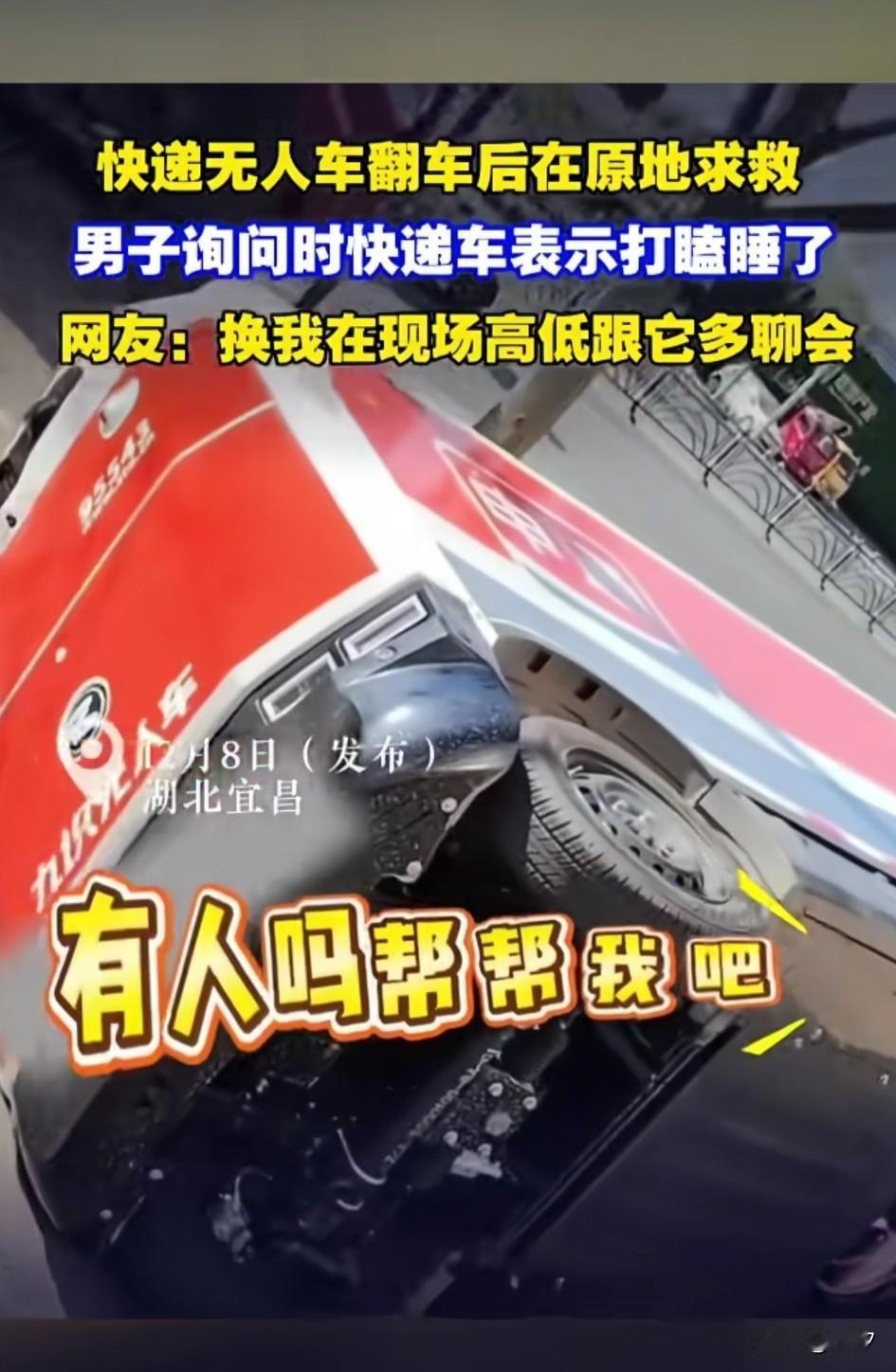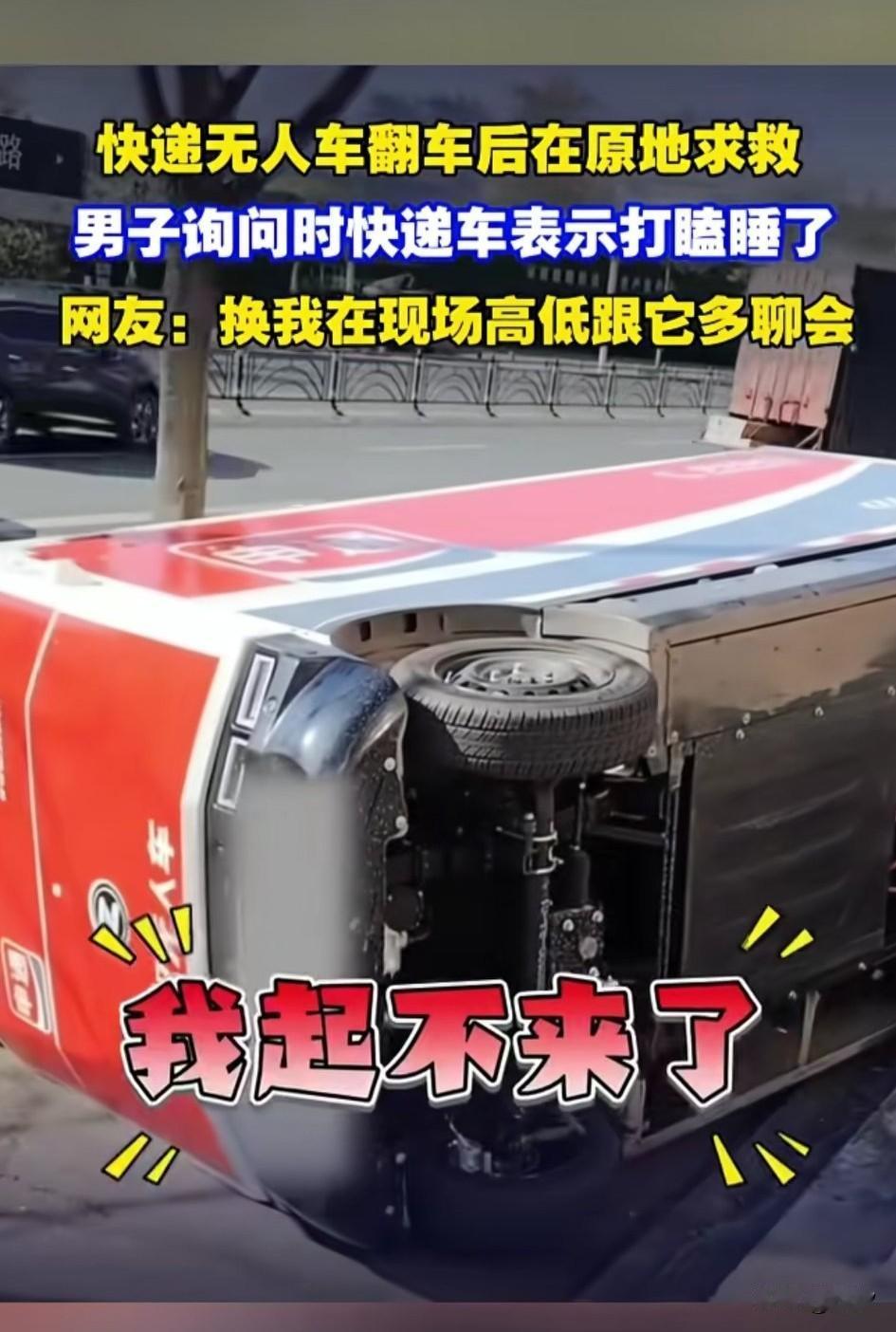 快递无人车翻之后在原地等待救援, 有位路人看到后, 上前询问他为什么翻车? 快递无人车赶紧向路人求救, 还用可爱的声音表示有人帮帮我吧! 我起不来了, 刚才开车打瞌睡了, 这才翻车了, 男子表示都说了这边的路不让走, 你还非要过来, 这回好了,翻出来了, 说了一圈就是没有帮助无人车, 这么可爱的无人车, 背后其实都是有驾驶员员的, 都说科技改变生活, 而国内的科技只会抢底层人的饭碗, 国内还有很多无人车堵路的报道, 这些无人车不听从交警的指挥, 每次都是作为笑谈来报道, 这次当然也不例外了, 有网友表示遇到翻车的无人车, 我可以聊天,聊到它没有电, 大家遇到无人车翻车会上前救助吗? 无人驾驶快递车 无人物流配送车 智能快递无人车 快递无人车 无人车快递配送 无人配送小车 户外无人配送车