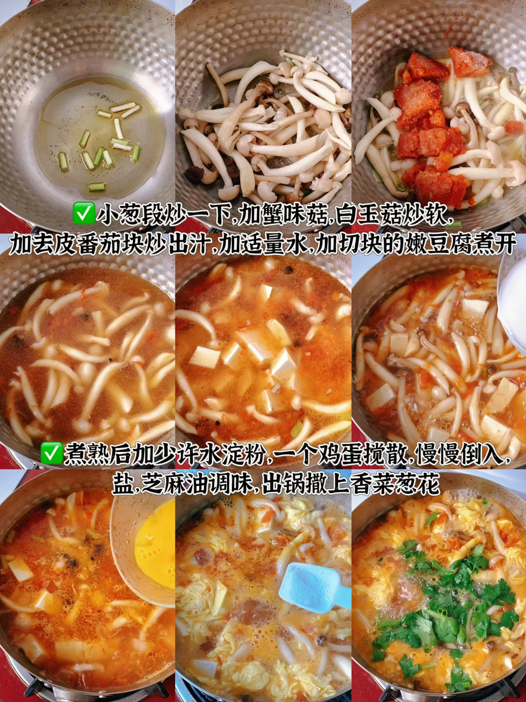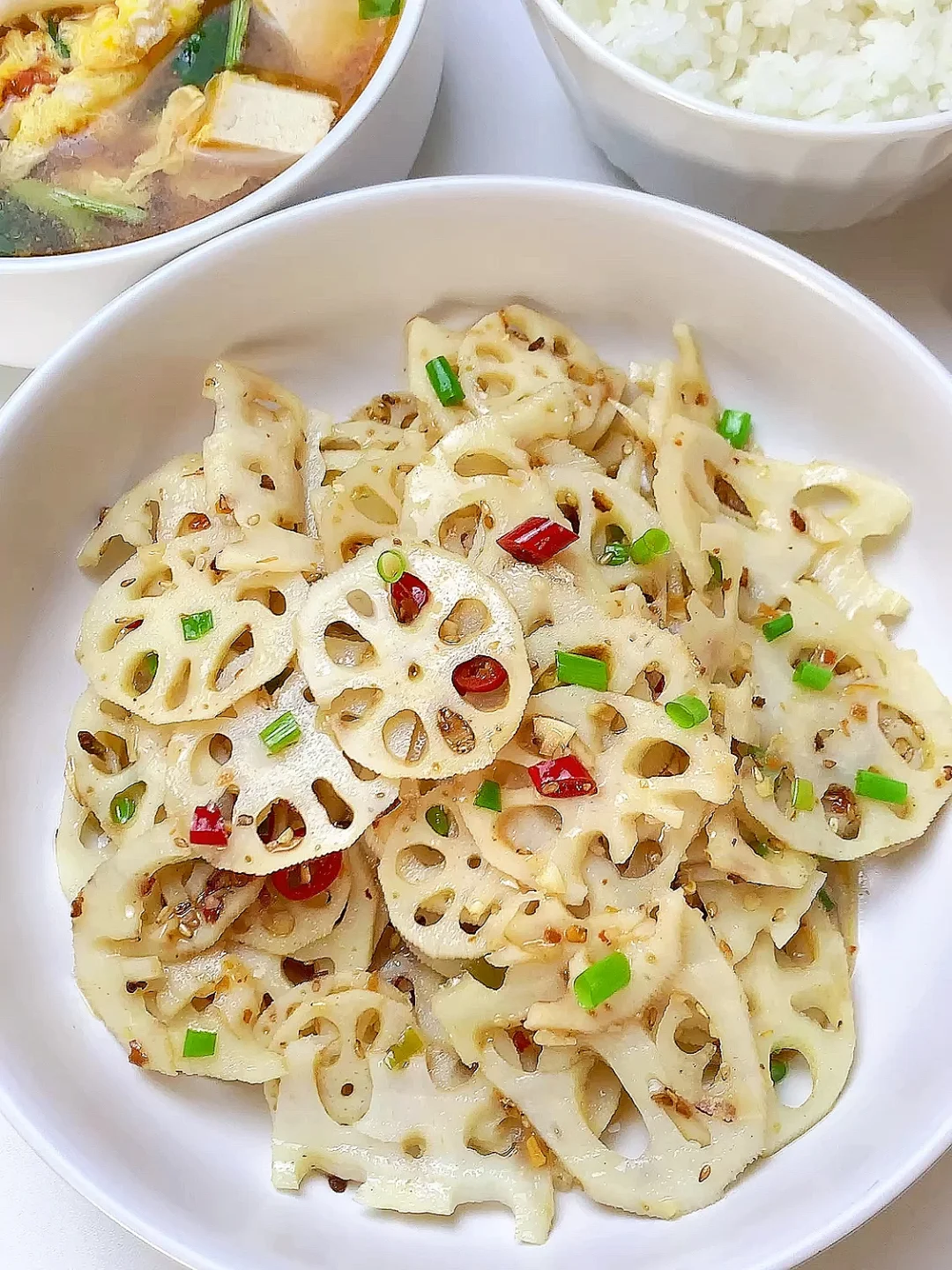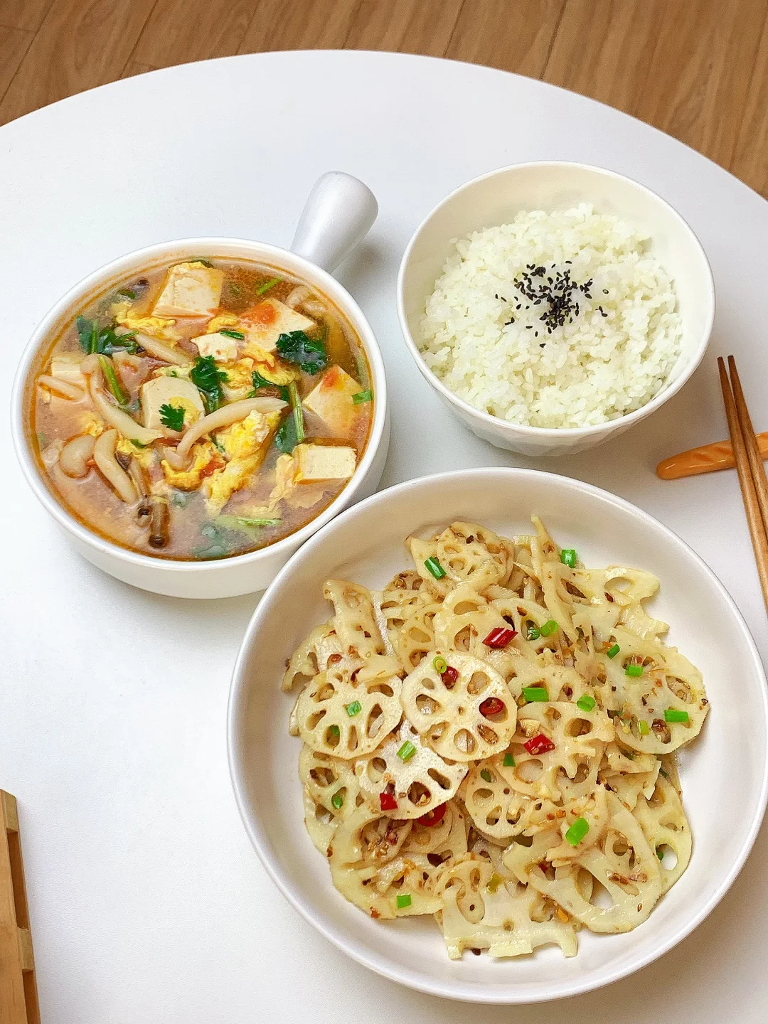 👩🏻🍳今日菜单分享 1️⃣菌菇豆腐鸡蛋汤 2️⃣酸辣藕片 主食:米饭🍚 ……………………………………………………………………………… 🛒食材清单:蟹味菇 | 白玉菇 | 鸡蛋 | 嫩豆腐 | 莲藕 📝早八打工人的一日三餐,拒绝外卖[偷笑R],坚持做饭的一天,吃简单干净的饭菜~ ♨️拌菜汁:葱花,蒜末,小米辣,白芝麻,辣椒粉,泼热油,1勺生抽,1勺蚝油,2勺香醋,半勺白糖,少许盐 ₍˄·͈༝·͈˄*₎◞ ̑̑