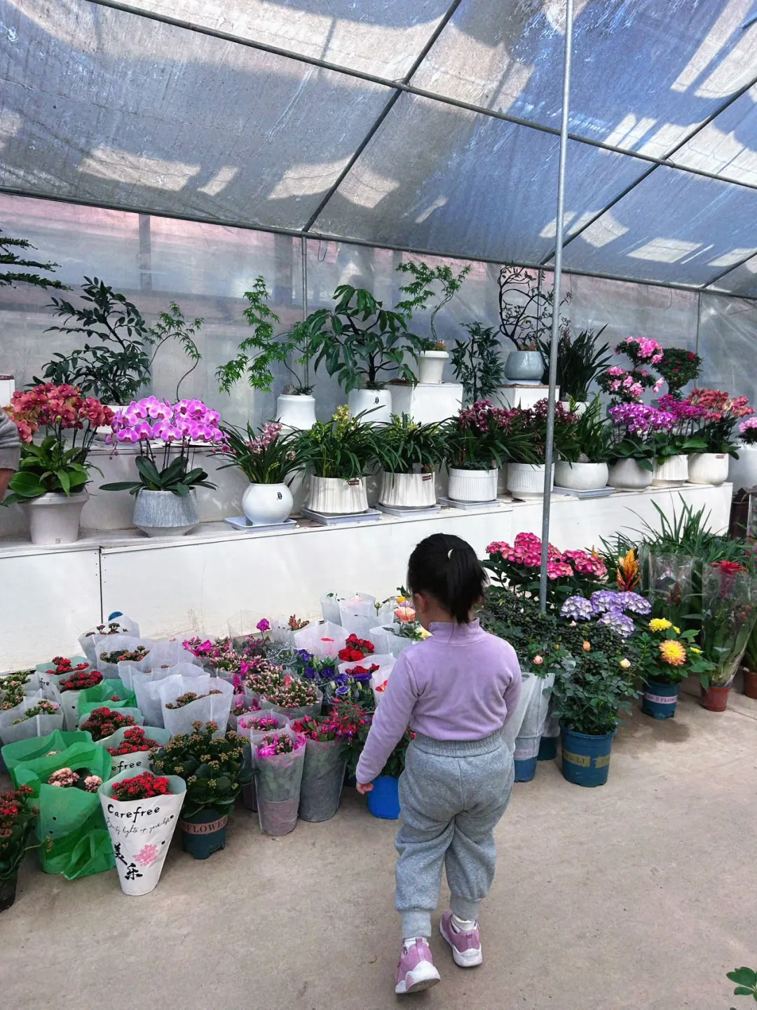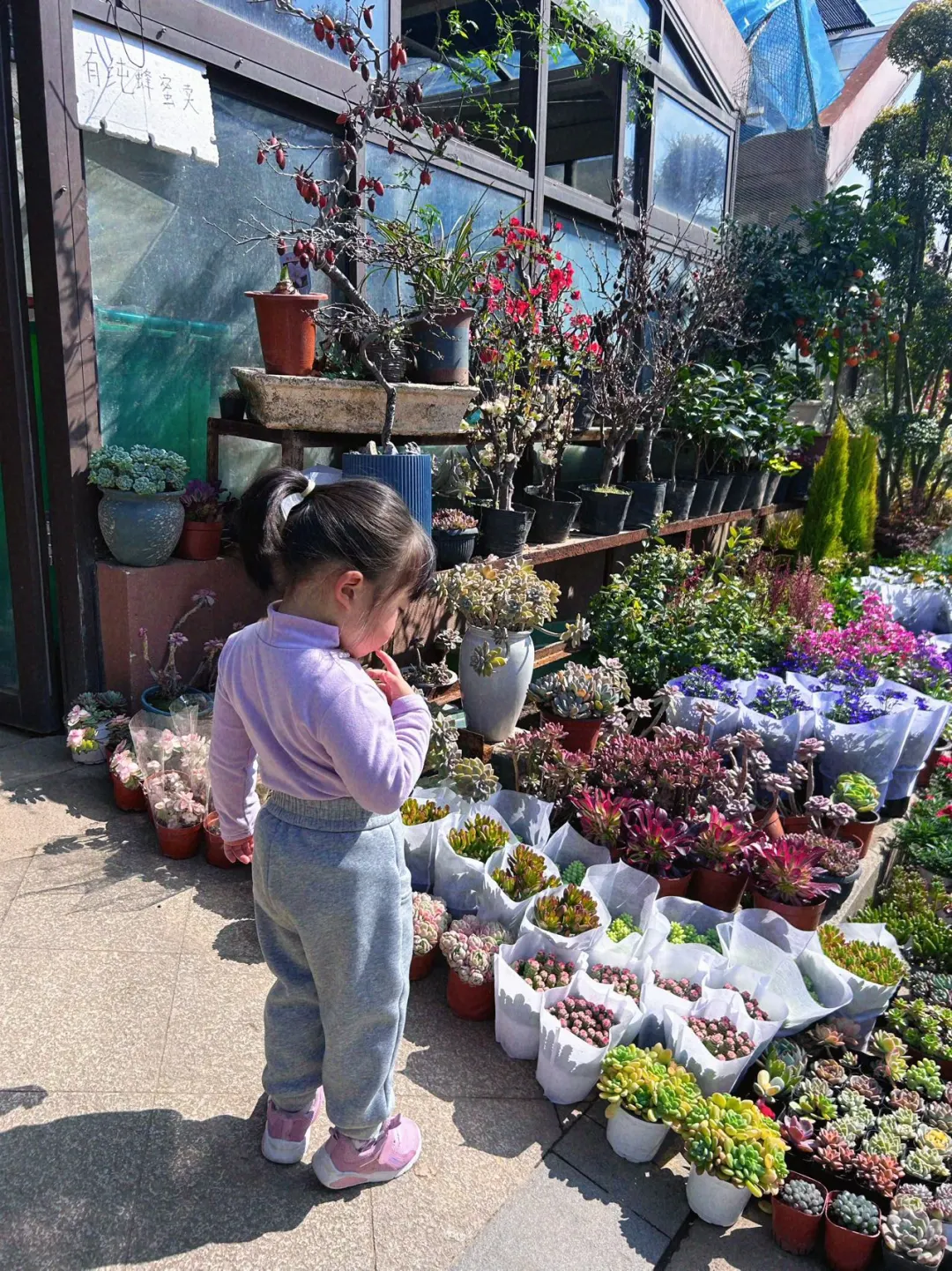 本周潼宝托班任务:带一盆植物‼️所以就带她去逛县城的花木市场,让她自己去选一盆植物🌳希望她从小就能学会做选择。