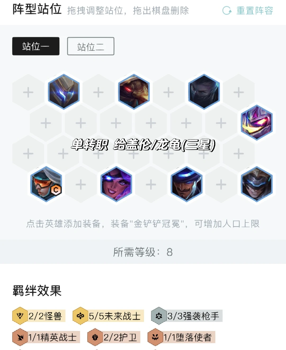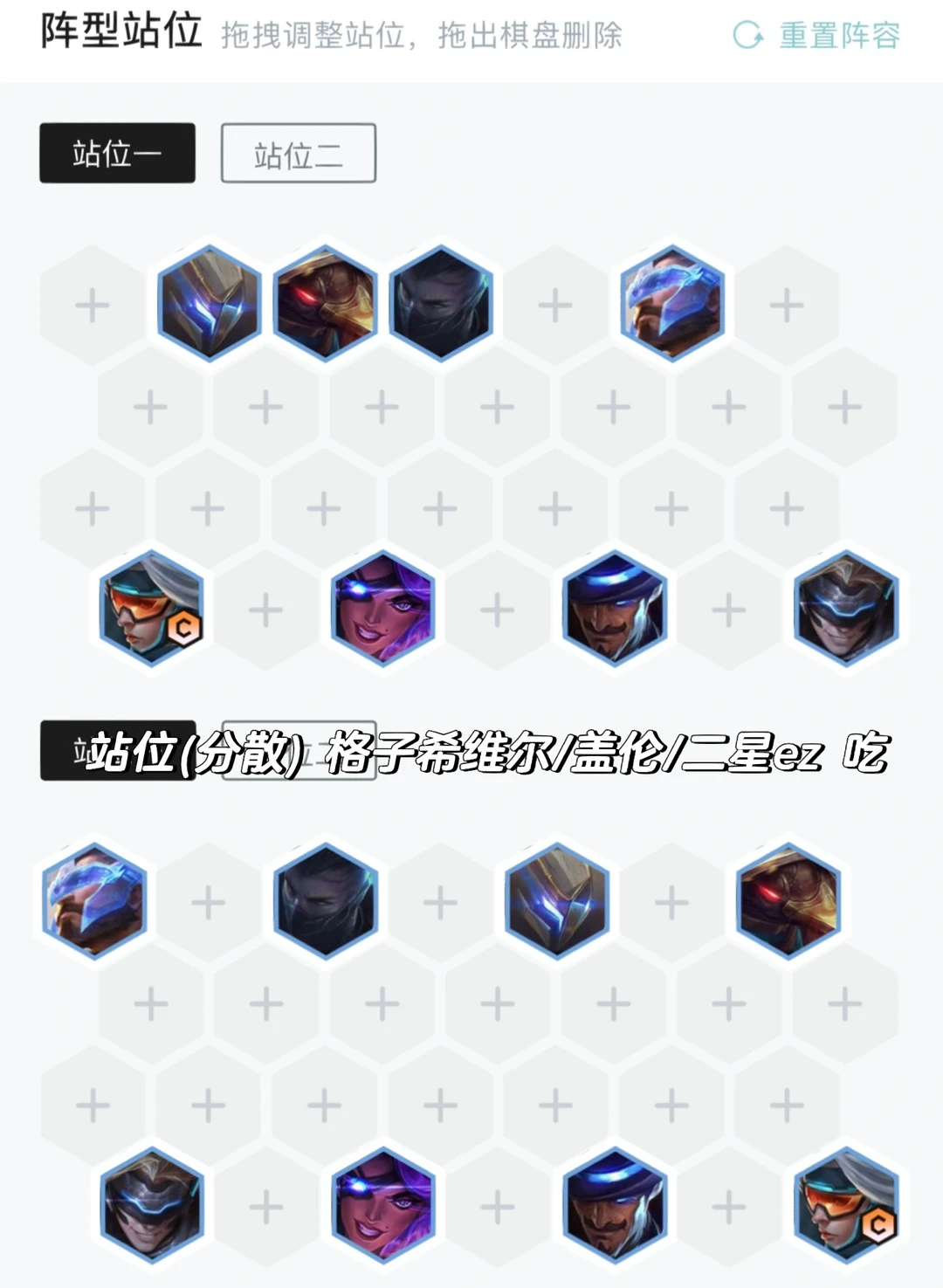 分散站位,希维尔三星必吃后排格子,如果格子都在前则给盖伦/稻草人/龙龟有转职吃,没有则给慎。
