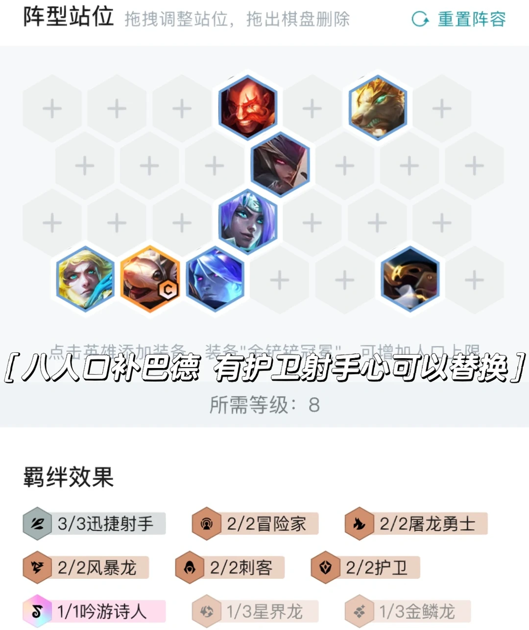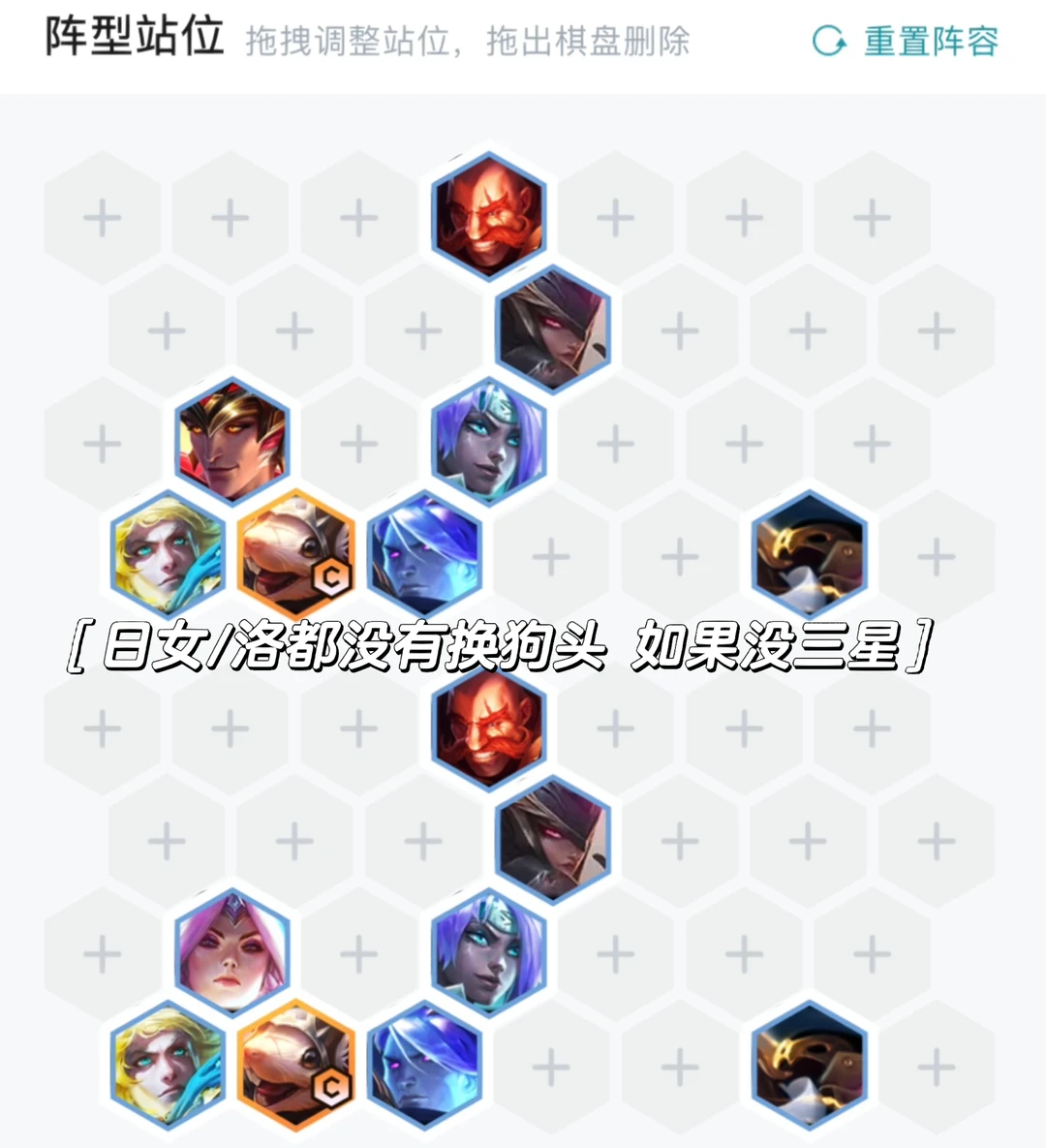 可以根据海克斯灵活开4护卫或者4射手,需要注意的是有狮子狗海克斯必拿甲壳针对。